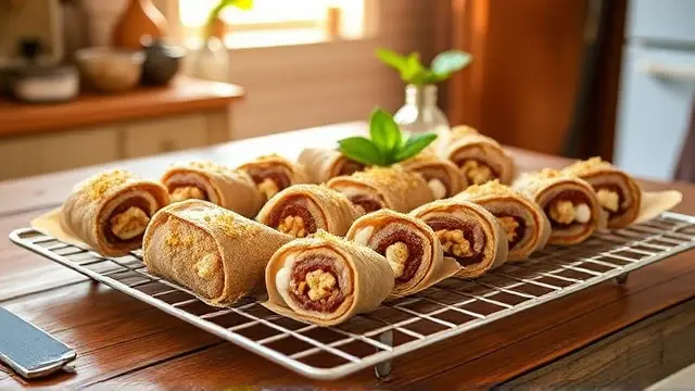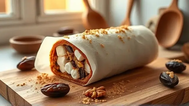 **No-Bake Date Roll** ===================== A simple and delicious dessert that's perfect for warm weather or when you don't feel like baking. This no-bake treat combines the natural sweetness of dates, the crunch of walnuts, and the fluffiness of marshmallows all in one convenient package. ### Ingredients * 1 pound graham crackers * 1 pound dates * 1/2 cup walnuts * 1 cup marshmallows * 1 cup milk ### Directions 1. Combine the graham crackers, dates, walnuts, and marshmallows in a large mixing bowl. 2. Gradually add the milk to the mixture, stirring until everything is well combined. 3. Shape the mixture into small loaves or logs, depending on your preference. 4. Sprinkle wax paper with crushed graham crackers to prevent sticking. 5. Wrap each loaf in the prepared wax paper, and you're ready to serve. ### Variations and Adjustments Feel free to get creative with this recipe by adding your favorite nuts or spices! You could also try using different types of milk, such as almond or soy milk for a non-dairy version. If you prefer a stronger date flavor, use pitted dates instead of the loose ones. The possibilities are endless, so have fun and experiment to find your perfect no-bake date roll!name