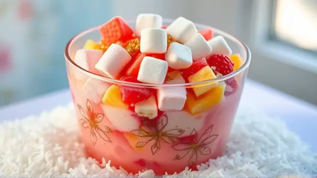 This refreshing salad is a perfect dessert or snack for any occasion. With its sweet and tangy flavors, it's sure to be a hit with family and friends. The combination of fruit, marshmallows, nuts, and creamy mayonnaise and whipped cream creates a delightful texture that will leave you wanting more.