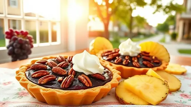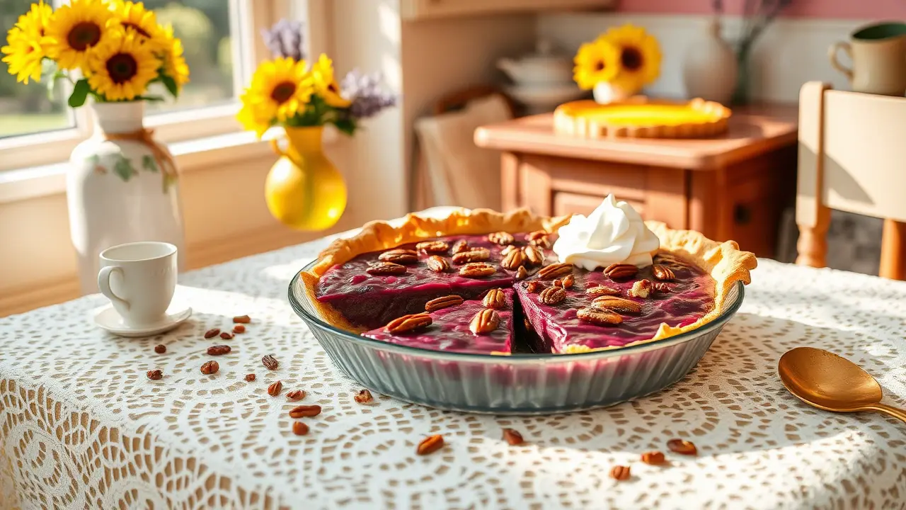 This unique pie is a refreshing twist on traditional desserts, perfect for warm weather or as a sweet treat any time of the year. The grape juice filling is a delightful surprise, and the crunchy pecans add a nice texture to each bite.