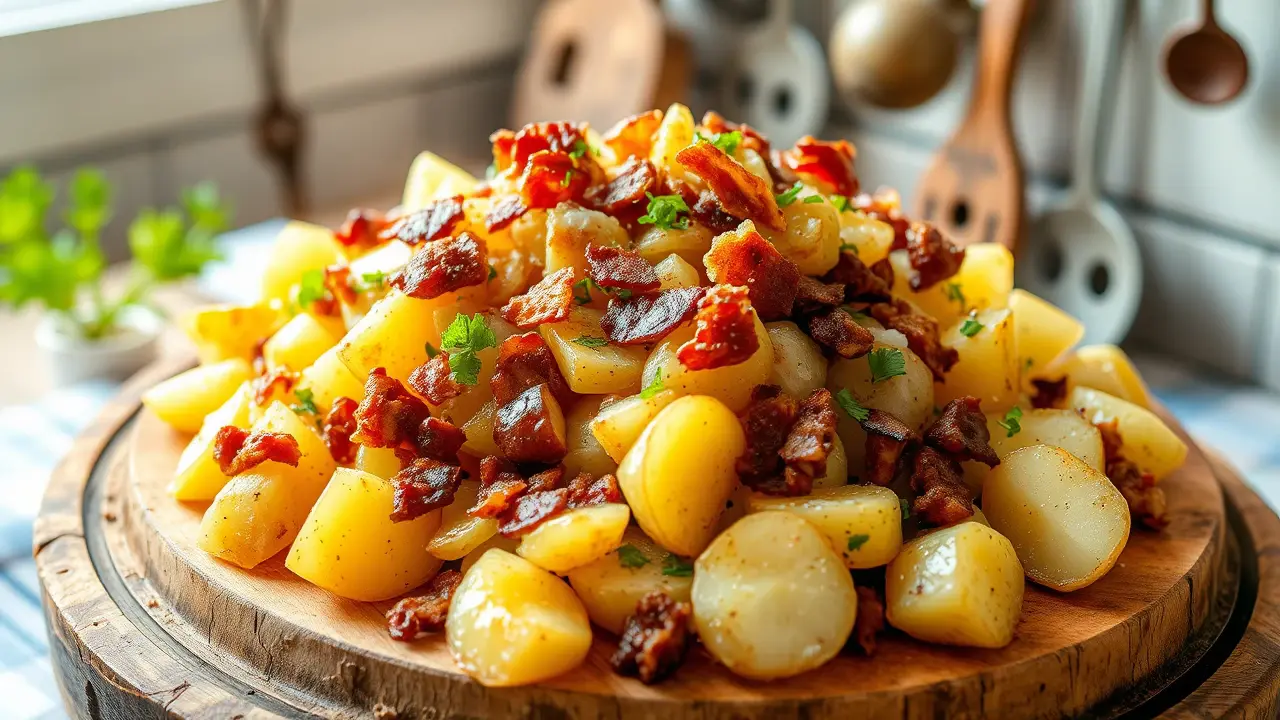 This comforting hot potato salad is a delightful twist on a classic dish, making it the perfect side for any meal—from summer barbecues to cozy winter dinners. You'll love the combination of crispy bacon and tender potatoes, all dressed up in a sweet and tangy vinaigrette. Serve it warm for the best experience, and don’t be surprised if it disappears in no time!
