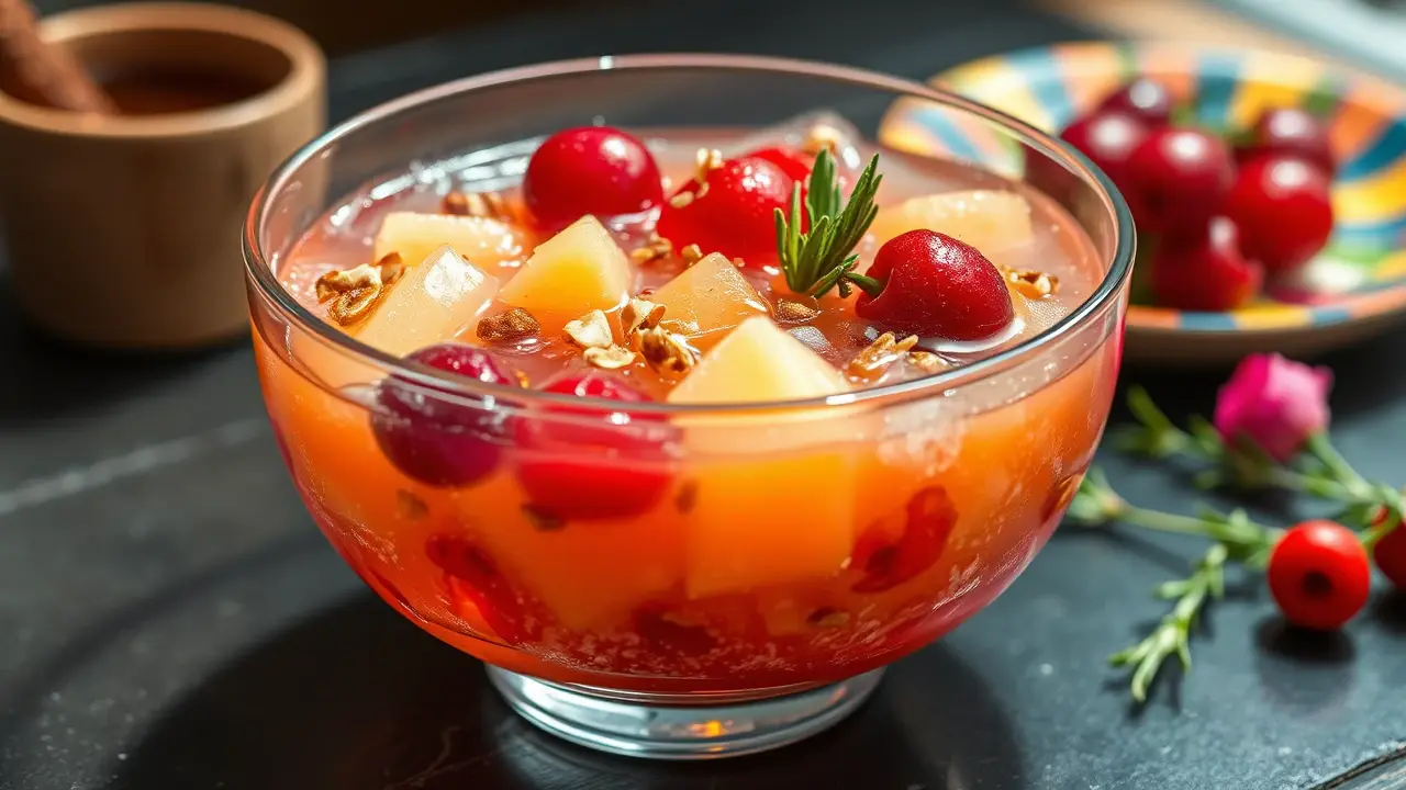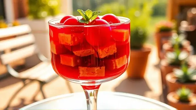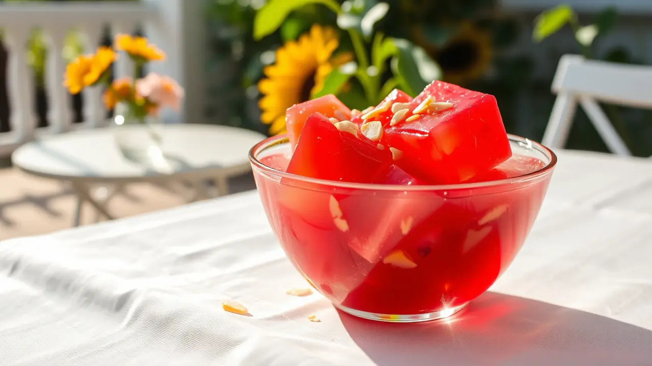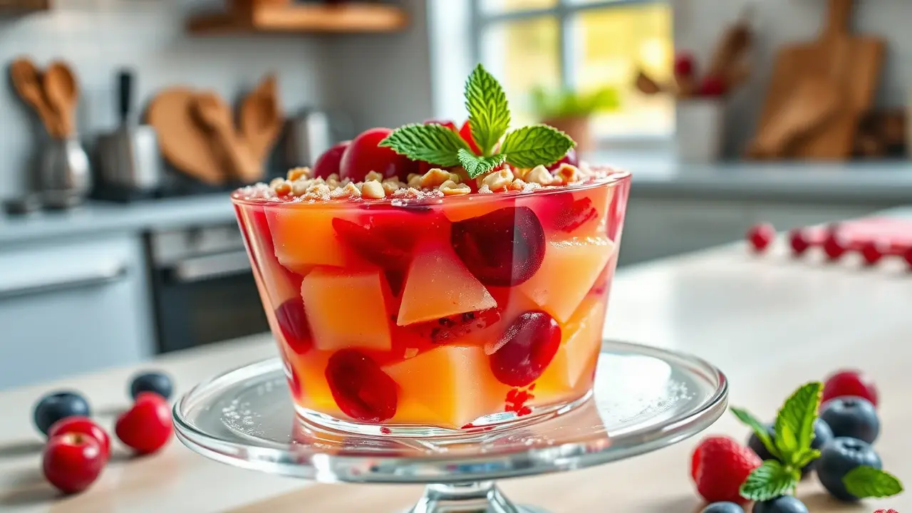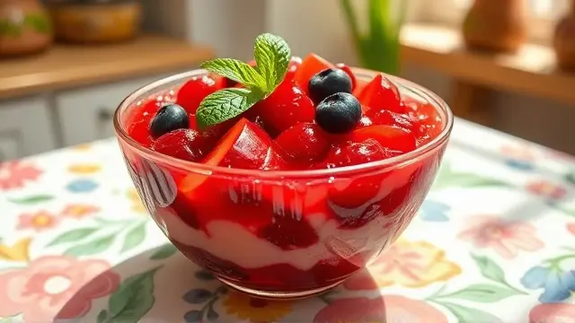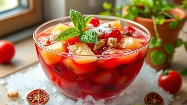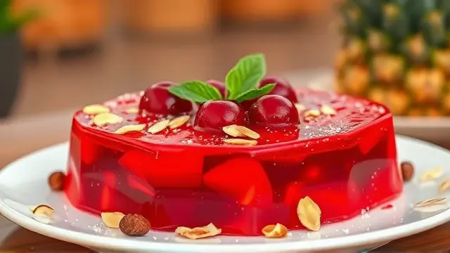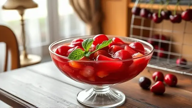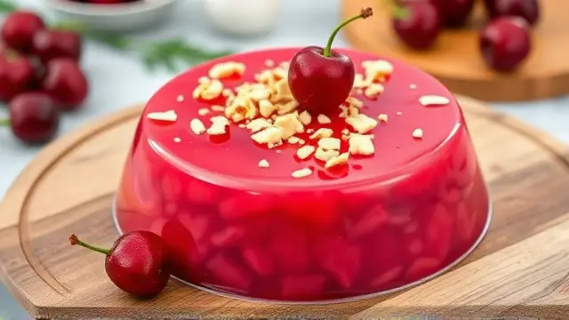 **Tart Cherry Delight** ======================= Are you looking for a sweet and tangy dessert that's perfect for warm weather? Look no further than this refreshing cherry salad! This easy-to-make recipe is a great way to enjoy the flavors of summer, and it's sure to be a hit at your next potluck or gathering. **Ingredients** --------------- * 1 package (6 oz) cherry gelatin * 2 cups boiling water * 1 cup cherry pie filling (20 oz) * 1 cup crushed pineapple (20 oz) * 1/2 cup chopped nuts (such as almonds or walnuts) **Directions** ------------- 1. Dissolve the cherry gelatin in the hot water. 2. Let it cool slightly, then add the remaining ingredients (cherry pie filling and crushed pineapple). 3. Mix well until all the ingredients are fully incorporated. 4. Chill the mixture in the refrigerator until it's set. **Suggested Variations or Adjustments** ---------------------------------------- * For a lighter flavor, you can reduce the amount of cherry pie filling to 1/2 cup or even less. * If you prefer a stronger nut flavor, you can increase the amount of chopped nuts to 3/4 cup or more. * Consider adding some fresh fruit, such as blueberries or raspberries, for an extra burst of flavor and color. Enjoy your delicious cherry salad!name