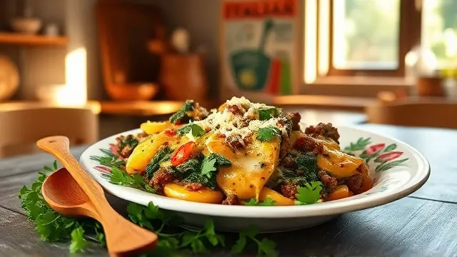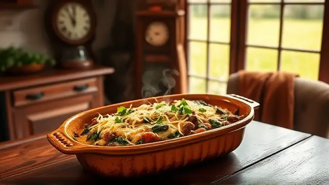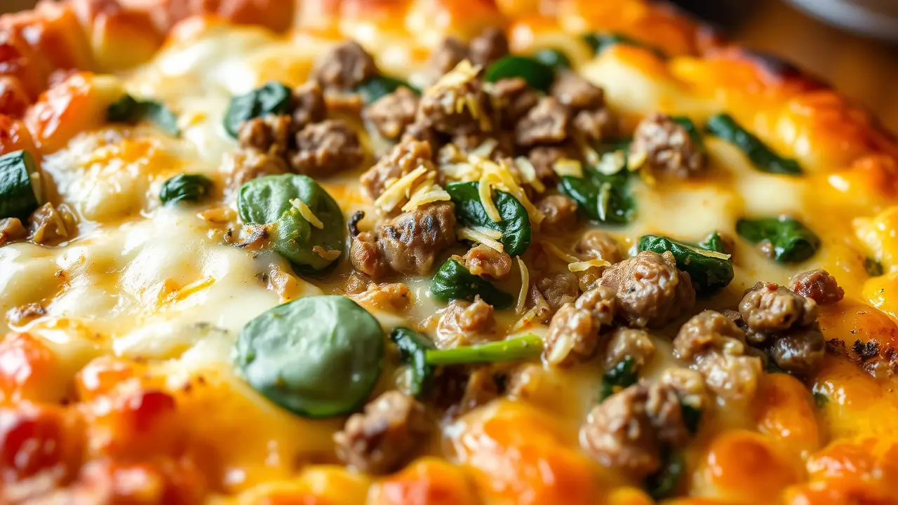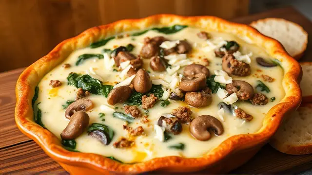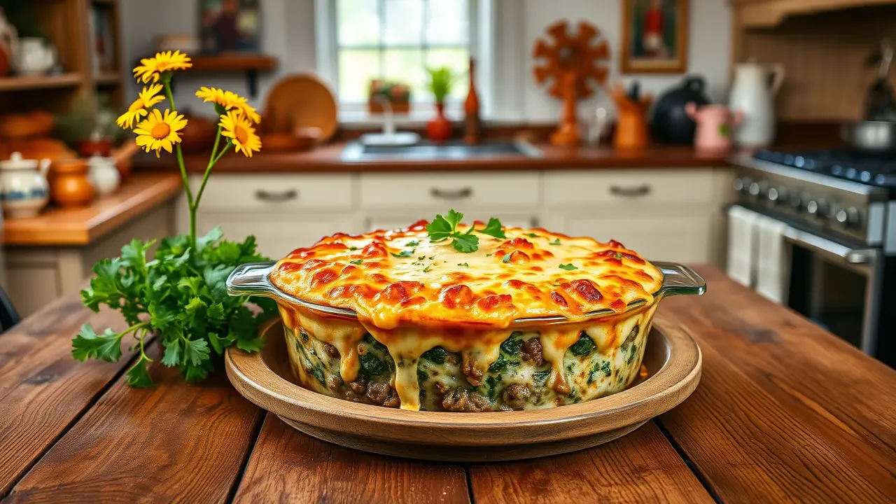This hearty and flavorful hot dish is a perfect combination of beef, spinach, and creamy cheese. It's an easy and satisfying meal that's sure to become a family favorite. With its rich flavors and textures, it's a great option for a weeknight dinner or a special occasion.