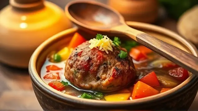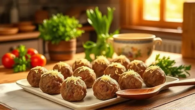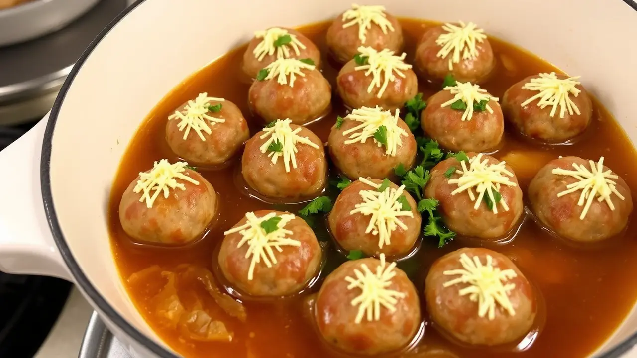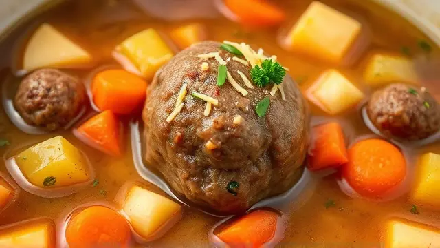 # Savory Meatballs for Vegetable Soup 🍲🥩 These savory meatballs are a perfect complement to your favorite vegetable soup, adding rich flavor and texture. They are easy to whip up and take just a little time to prepare. Not only do they enhance your soup, but they can also be enjoyed on their own as a delicious appetizer. Perfect for cozy dinners or meal prep for the week ahead! ## Ingredients ### For the meatballs - 1/4 cup minced onions (for that aromatic touch) - 2 tablespoons fat or salad oil (for sautéing) - 1/2 cup bread crumbs (for binding) - 1/4 cup milk (to soften the bread) - 1/2 pound ground beef (or your choice of protein) - 1 egg (to hold it all together) - 1/2 teaspoon salt (to season) - A sprinkle of snipped parsley (for color and flavor) - 1 cup grated sharp cheddar cheese (because cheese makes everything better!) ## Instructions 1. **Sauté the Aromatics**: In a small skillet, heat the oil over medium heat and sauté the minced onions until they’re translucent and fragrant. > 🔥 Cooking the onions first brings out their sweetness and adds depth to the meatballs. 2. **Mix It Up**: In a large mixing bowl, soak the bread crumbs in the milk until soft. Then, add the ground beef, sautéed onions, beaten egg, salt, and snipped parsley. Mix until just combined (do not overwork). > 🥄 For a richer flavor, consider adding minced garlic or a dash of Worcestershire sauce to the mixture. 3. **Shape the Meatballs**: Form the mixture into approximately 12 small meatballs, about 1 inch in diameter. 4. **Chill**: Refrigerate the meatballs for about 30 minutes. This step helps them hold their shape while cooking. 5. **Cook in Soup**: Bring your vegetable soup to a boil and gently drop the meatballs in. Cover and simmer for about 10 minutes, or until cooked through. > ⏰ Make sure the soup is boiling before adding the meatballs for even cooking! ## Variations - **Turkey or Chicken Meatballs**: Swap out the beef for ground turkey or chicken for a lighter option. Just remember to add some extra seasoning to keep the flavor punchy! 🌿 - **Cheesy Surprise**: For added flavor and moisture, stuff a small cube of cheese inside each meatball before cooking. A gooey center is always a hit! 🧀 - **Spicy Kick**: Incorporate some crushed red pepper flakes or minced jalapeño into the mixture for those who love a bit of heat! 🌶️ Enjoy your hearty vegetable soup with these delightful meatballs that are sure to impress! 🍽️✨name