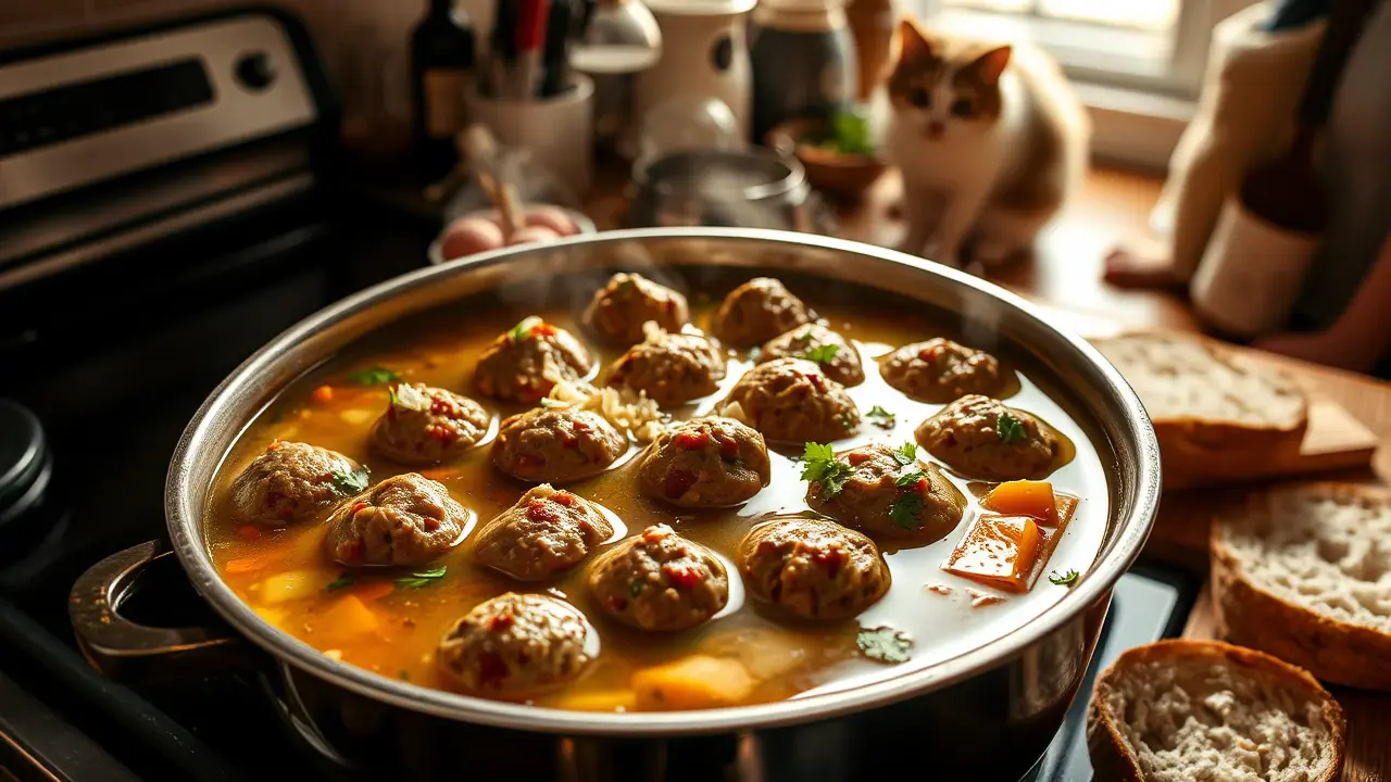 ⏰ Make sure the soup is boiling before adding the meatballs for even cooking!