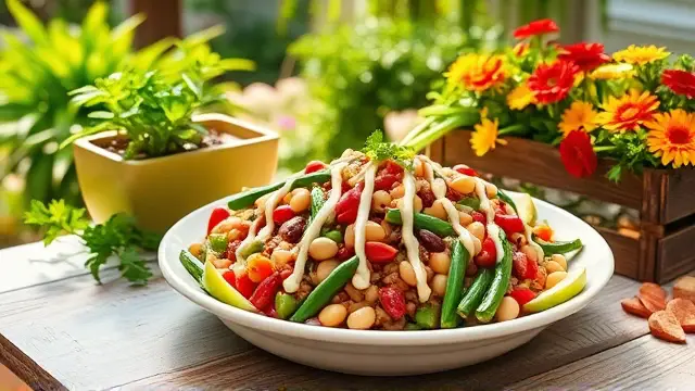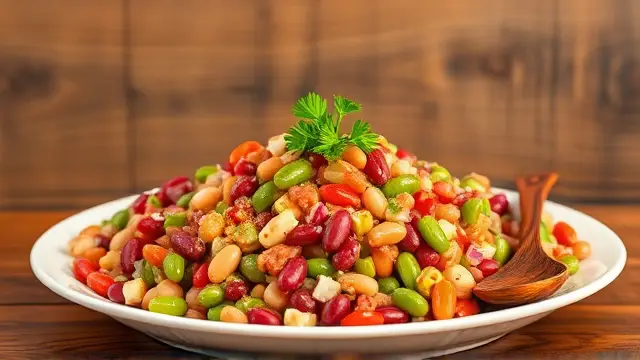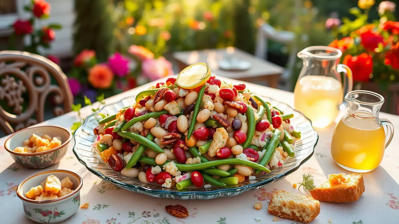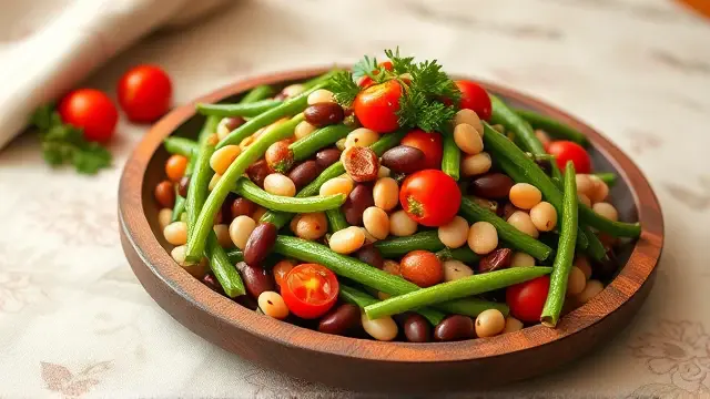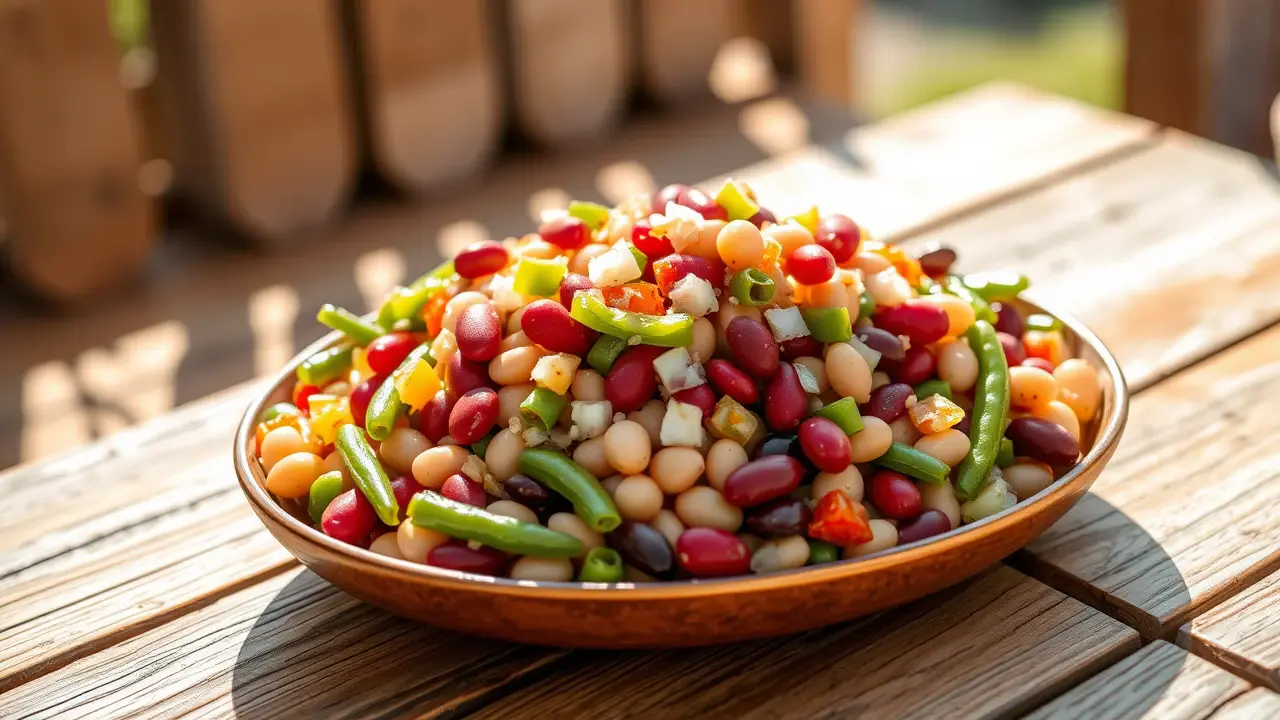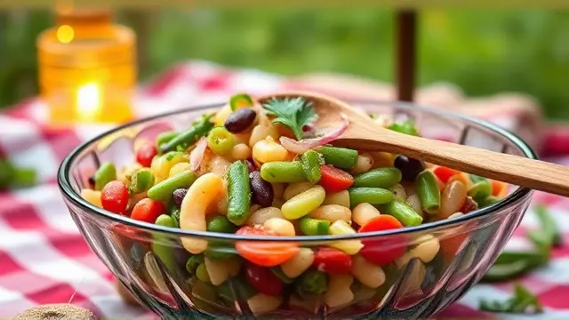 # Delectable Three Bean Salad 🥗🌱 This vibrant and refreshing Three Bean Salad is a perfect side dish for any gathering or a healthy addition to your lunch. Bursting with color and flavor, it's not only delicious but also packed with nutrients. You can easily adjust the ingredients to suit your taste preferences, making it a versatile recipe for any occasion! Serve it chilled for a refreshing crunch, and consider pairing it with grilled meats or as a topping for tacos! 🌮🍽️ ## Ingredients ### For the salad - 1 cup kidney beans (canned or cooked) - 1 cup green beans (trimmed and cut into bite-sized pieces) - 1 cup wax beans (canned or cooked) - ½ cup chopped onion (red or white for more zing) - ½ cup diced green pepper - ½ cup chopped celery ### For the dressing - ½ cup vegetable oil (Wesson or your favorite) - ½ cup vinegar (white or apple cider) - ½ cup sugar ## Instructions 1. **Prep the Beans**: If using canned beans, drain and rinse them well under cold water to remove excess sodium. 2. **Mix the Dressing**: In a small bowl, whisk together the vegetable oil, vinegar, and sugar until the sugar is dissolved. 3. **Combine the Ingredients**: In a large mixing bowl, combine the kidney beans, green beans, wax beans, chopped onion, diced green pepper, and chopped celery. > 🥗 For extra flavor, let the chopped veggies sit for a few minutes before adding the dressing. This allows their natural juices to mingle with the beans! 4. **Dress the Salad**: Pour the dressing over the bean and vegetable mixture. Gently toss until everything is coated evenly. 5. **Chill and Serve**: Cover and refrigerate for at least 2 hours before serving to allow the flavors to meld. > ❄️ This salad can be made a day in advance! It tastes even better after marinating overnight, so it's perfect for meal prep or potlucks. ## Variations - **Add Protein**: Toss in some grilled chicken or chickpeas for added protein and make it a full meal. 🍗🥙 - **Herbed Twist**: Fresh herbs like parsley, cilantro, or dill can add a delightful flavor boost! - **Spicy Kick**: Add a chopped jalapeño or a dash of hot sauce to the dressing for a zesty punch. - **Sweet & Savory**: Mix in some dried cranberries or fresh corn for a hint of sweetness and crunch. Enjoy your delicious and colorful Three Bean Salad! 🌈🥗name