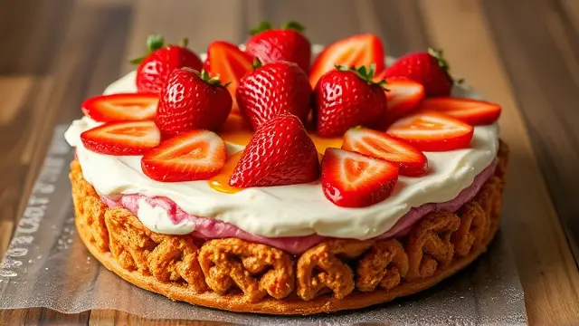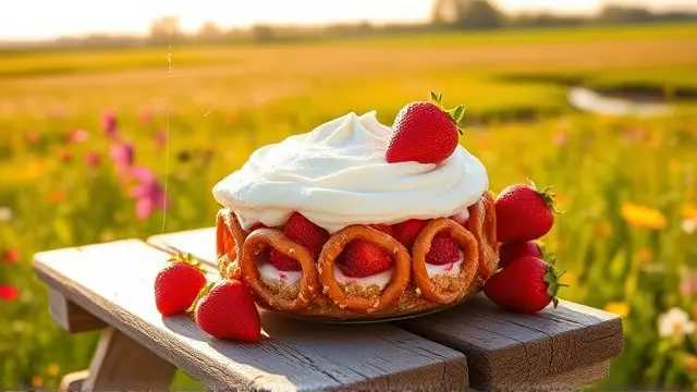 **Strawberry Pretzel Dessert** ===================================== Are you looking for a sweet and salty treat that's perfect for spring? Look no further than this Strawberry Pretzel Dessert! A classic combination of flavors, this dessert is easy to make and sure to impress your friends and family. This recipe is a creative twist on traditional strawberry shortcake. The crunchy pretzels add a delightful textural element, while the creamy cream cheese and cool whip provide a rich and indulgent flavor. And with the sweetness of the strawberries and jello, you'll be in dessert heaven! **Ingredients** --------------- * 2 1/3 cups large pretzels * 2/3 cup (1 stick) unsalted butter (not olio!) * 3 tablespoons sugar * 8 ounces cream cheese, softened * 1 small carton cool whip * 1 (16 ounce) package frozen strawberries * 2 cups boiling water * 1 large strawberry jello **Directions** -------------- 1. Preheat your oven to 350 degrees. 2. In a medium bowl, mix together the sugar and melted butter until well combined. Stir in the crushed pretzels. 3. Press the mixture into a 9x3 inch pan (or other similar-sized baking dish). 4. Bake for 10 minutes, then let cool completely. 5. In a large bowl, beat the cream cheese until smooth. Add the sugar and mix until well combined. 6. Fold in the cool whip until no white streaks remain. 7. Spread the cream cheese mixture over the cooled pretzel crust. 8. Pour the boiling water over the frozen strawberries and jello mixture. 9. Allow the mixture to partially set (about 30 minutes), then pour it into the shell with the cream cheese mixture. 10. Refrigerate until firm, about 2-3 hours. **Variations and Adjustments** ------------------------------- * To add a little extra flavor, try adding some vanilla extract or a pinch of salt to the cream cheese mixture. * If you prefer a stronger strawberry flavor, use more frozen strawberries or add some fresh strawberry puree to the mix. * Consider using different flavors of jello, like raspberry or orange, for a unique twist on this dessert.name