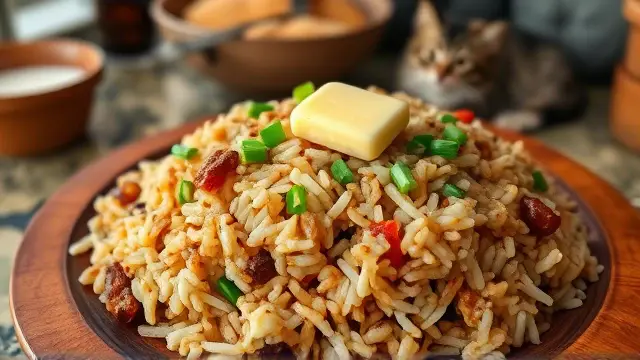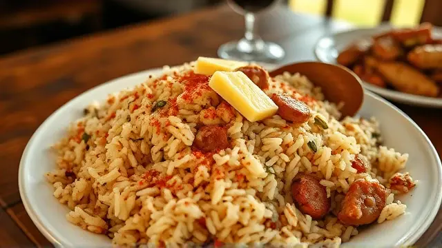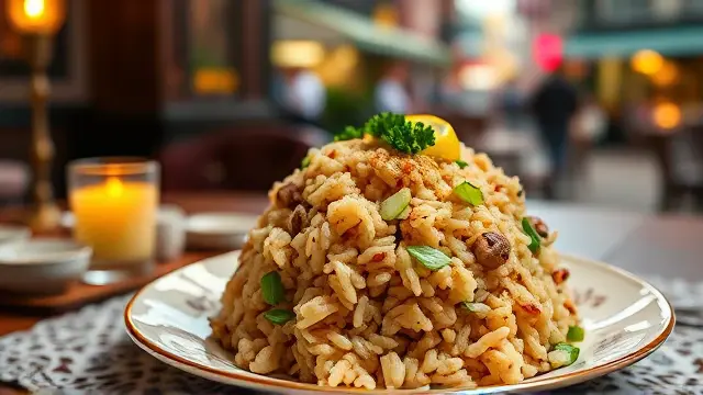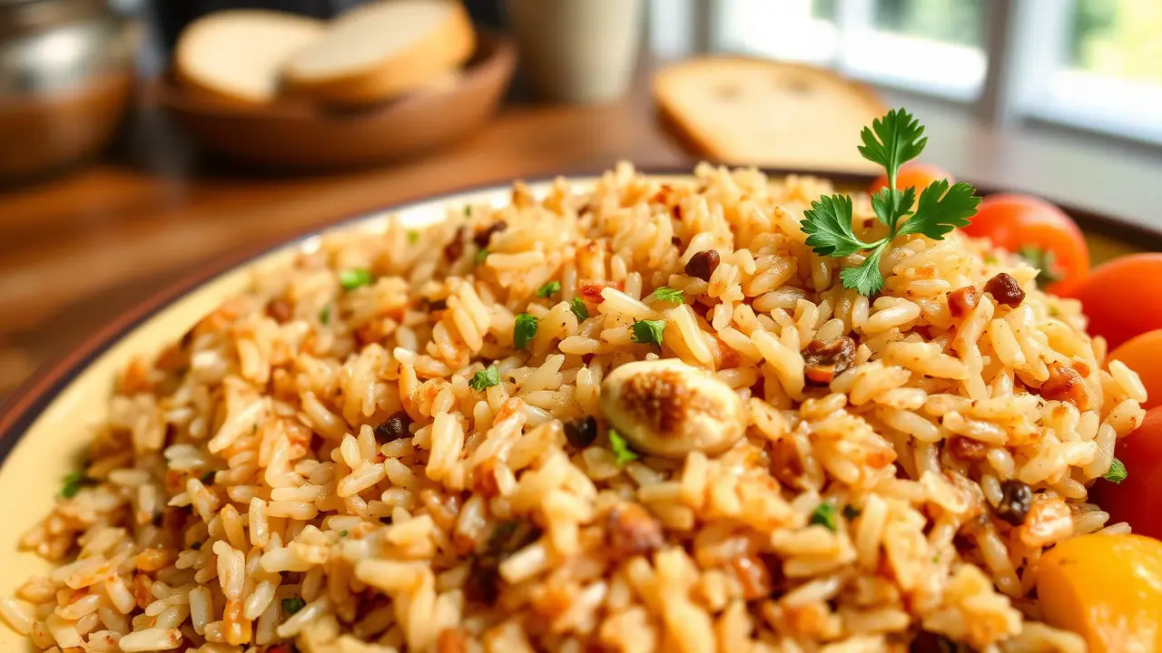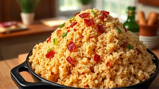 # Southern Style Dirty Rice 🍚🌶️ Embark on a culinary journey to the South with this hearty and flavor-packed Dirty Rice recipe! Perfectly seasoned with a blend of meats and vegetables, this dish is a staple that brings warmth and joy to any gathering. The combination of ground beef, pork sausage, and giblets creates a rich flavor profile that's just irresistible. Serve it at your next dinner party or family gathering for a taste of comfort! ## Ingredients ### For the Rice Base - 3 tablespoons of oil - 3 pounds of ground beef - ½ pound of pork sausage - 2 cups of giblets (chicken or turkey) - 2 cups of onions, chopped - ½ cup of green bell pepper, chopped - ½ cup of celery, chopped - ½ cup of parsley, chopped - ¼ cup of garlic, minced ### For the Seasoning - 1 teaspoon of dried mint - 1 teaspoon of cayenne pepper (adjust to taste) - 2 tablespoons of hot sauce (Louisiana hot sauce works great!) - 3 tablespoons of Worcestershire sauce - 2 cups of water - Salt to taste ## Instructions 1. **Prepare the Vegetables:** In a large heavy pan, add the chopped onions, green bell pepper, celery, and garlic. 2. **Layer the Ingredients:** Pour in the oil and then layer the ground beef, pork sausage, and giblets on top of the vegetables. > 🔥 Ensure that the meat is evenly distributed for optimal cooking, which will enhance the flavors of the entire dish. 3. **Start Cooking:** Add the water, mint, cayenne pepper, and Worcestershire sauce to the pan. Bring everything to a boil. 4. **Simmer:** Once boiling, cover the pan and let it simmer without stirring for 45 minutes. > ⏰ This method helps to create the signature "dirty" effect, where all the flavors meld beautifully, giving your rice that savory, rich coloring. 5. **Season to Taste:** After 45 minutes, check for seasoning and add salt as needed. Once satisfied, give it a gentle stir, then serve garnished with fresh parsley. ## Chef's Tips - **Customizable Spice Level:** Feel free to adjust the amount of cayenne pepper or hot sauce based on your spice preference. You can also add a pinch of smoked paprika for a smoky flavor! 🌶️ - **Serving Suggestions:** Dirty Rice pairs wonderfully with fried chicken or catfish. Don’t forget to add a side of coleslaw for a refreshing crunch! ## Variations - **Vegetarian Version:** Substitute the meats with a blend of mushrooms and lentils for a hearty, plant-based option. Use vegetable broth instead of water to enhance the flavor! 🌱 - **Seafood Twist:** Mix in shrimp or crab meat during the last few minutes of cooking for a delicious seafood version. Just be careful not to overcook the seafood! 🦐 - **One-Pot Wonder:** You can cook this in a slow cooker! Just combine all the ingredients and cook on low for 4-6 hours. Now you’re all set to whip up some delicious Dirty Rice and impress your family and friends with this Southern classic! Enjoy! 🎉🍴name