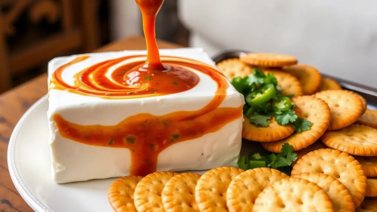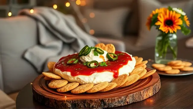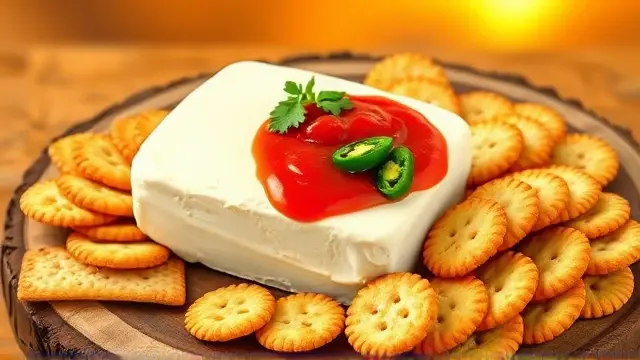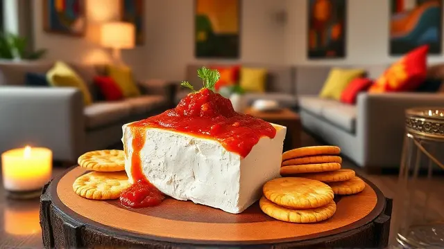 - Serve with Style: Set a tray of Triscuit crackers next to the cheese and salsa. Encourage guests to cut slices of the cheese and sauce together onto the crackers for the perfect bite.