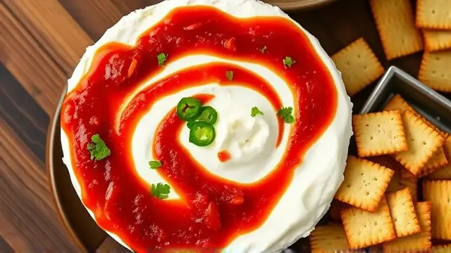 # Kae's Effortless Creamy Salsa Delight 🥳🧀 If you're hosting a gathering and need a quick and tasty appetizer that your guests will love, look no further! This easy-to-make dish combines the smoothness of cream cheese with the zesty kick of salsa or Picante sauce. It's a crowd-pleaser and perfect for any occasion, from game day to holiday parties! Serve it with crispy crackers for the ultimate bite of flavor. 🍽️✨ ## Ingredients - 8 oz. cream cheese (full-fat for extra creaminess is recommended) - 1 jar (8 oz. or 12 oz.) Picante sauce or Salsa Mexicana (choose mild or spicy based on your preference) - Triscuit crackers (or your favorite crunchy snacks) ## Instructions 1. **Prepare the Base**: Place the block of cream cheese on a serving dish. Make sure it’s at room temperature for easier spreading! 2. **Add the Flavor**: Pour the Picante sauce or Salsa over the cream cheese, allowing it to cascade down the sides like a delicious waterfall! > 🥄 For added presentation, feel free to garnish with fresh herbs like cilantro or a sprinkle of chopped green onions on top of the salsa. 3. **Serve with Style**: Set a tray of Triscuit crackers next to the cheese and salsa. Encourage guests to cut slices of the cheese and sauce together onto the crackers for the perfect bite. ## Tips for Success - **Make Ahead**: Prepare this dish up to a day in advance. Just cover and refrigerate until you're ready to serve—no need to worry about last-minute prep! - **For Extra Flare**: Add a dash of cumin or chili powder to the salsa for an extra layer of flavor. A squeeze of lime juice can also brighten up the dish. 🍋 ## Variations - **Spicy Twist**: For those who love heat, add diced jalapeños or a few dashes of hot sauce to the salsa mix. - **Herbed Cream Cheese**: Blend in some garlic powder and dried herbs (like oregano and basil) with the cream cheese for a flavorful twist. - **Cheesy Indulgence**: Top the cream cheese and salsa with a handful of shredded cheddar cheese and pop it under the broiler for a few minutes to create a melty masterpiece! 🧀🔥 Enjoy this delightful appetizer with friends and watch it disappear in no time! Perfect for dipping, spreading, or just savoring on its own. 🎉name