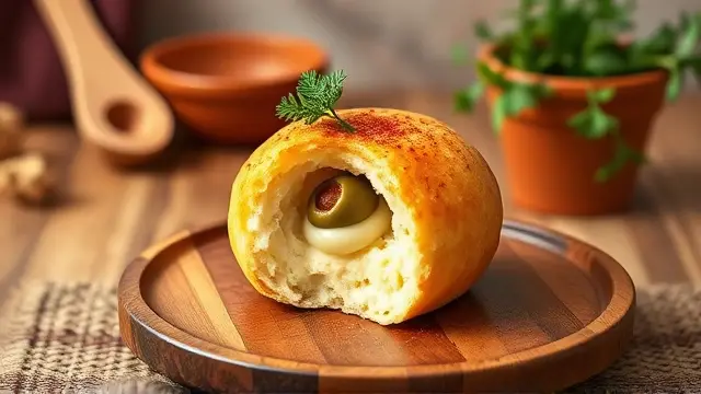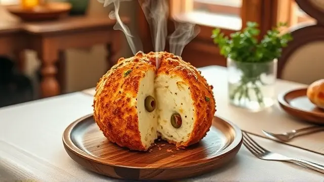 # Pat's Delightful Olive Cheese Balls 🧀🍏 These Olive Cheese Balls are the perfect appetizer for your next gathering! With a crunchy outside and a cheesy, savory center, they’re sure to be a crowd-pleaser. They’re simple to make, so even beginner cooks can impress their guests. Pair them with a zesty dip or your favorite cocktail, and watch your friends rave about them! 🍹🌟 ## Ingredients ### For the Cheese Dough - ½ lb. cheddar cheese, grated - 3 tablespoons butter or margarine, softened - ½ cup sifted all-purpose flour - ½ teaspoon salt - ¼ teaspoon paprika ### For the Filling - 24 stuffed olives, well-drained (green or black, depending on your preference) ## Instructions 1. **Prep the Oven**: Preheat your oven to 400°F (200°C) and line a cookie sheet with parchment paper (optional, for easier cleanup!). 2. **Make the Cheese Mixture**: In a mixing bowl, blend the grated cheddar cheese with the softened butter/margarine until creamy. > 🧀 For an extra kick, try using a sharp cheddar or adding a pinch of garlic powder! 3. **Combine the Dry Ingredients**: Stir in the sifted flour, salt, and paprika until well blended. The mixture will be thick and a bit crumbly. 4. **Wrap the Olives**: Take a small amount of the cheese dough and wrap it around each olive, ensuring it’s completely covered. Place the balls on your ungreased cookie sheet. 5. **Bake**: Bake in the preheated oven for approximately 10 minutes or until golden and bubbly. > ⏳ Keep an eye on them, as oven times may vary! It’s all about that perfect golden color! 6. **Serve & Enjoy**: Let cool slightly before serving. They’re best fresh out of the oven! > 🌿 Consider garnishing with fresh herbs like parsley or chives for an elegant touch. ## Variations - **Spicy Twist**: Add a dash of cayenne pepper or diced jalapeños to give your cheese balls some heat. 🌶️ - **Herb Infusion**: Mix in fresh herbs like dill or rosemary to the cheese mixture for a fragrant flavor profile. - **Different Cheeses**: Experiment with other cheeses such as mozzarella or pepper jack for a different taste and texture. Prepare for a delightful culinary adventure with these Olive Cheese Balls that are sure to impress! Enjoy! 🎉🧄name