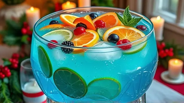 Create the Ice Ring: To make a festive fruited ice ring, fill a bundt pan or ring mold with assorted fruits (like cherries, oranges, or berries) and pour in some of the punch mixture. Freeze until solid.