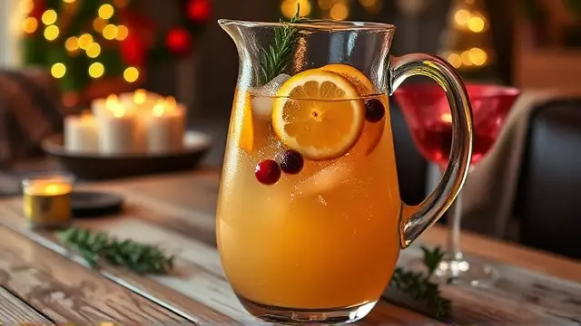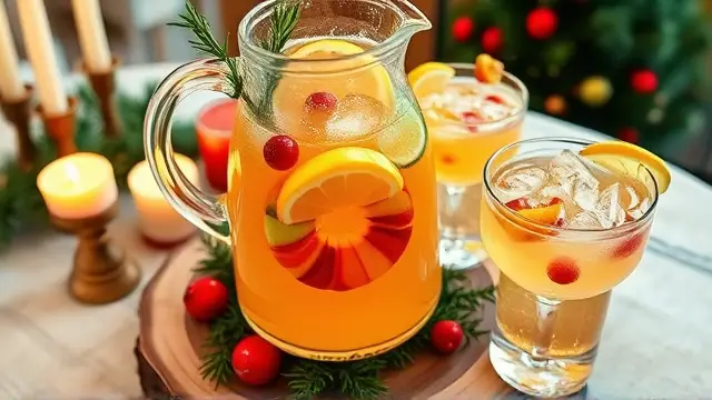 # Blanche's Festive Holiday Punch πΉπ This delightful Holiday Punch is the perfect party drink for your festive gatherings! With its vibrant flavors and refreshing fizz, it's sure to be a crowd-pleaser. This punch balances sweet fruitiness with a zing from ginger ale, making it an ideal beverage to toast any celebration. For an adult twist, you can add bourbon or vodka, but itβs just as enjoyable without the spirits! ππ₯ ## Ingredients - **For the punch base:** - 1 can (14 oz) Hawaiian Punch - 1 can (14 oz) pineapple juice - 4 cans (6 oz each) frozen lemonade - 2 cans (6 oz each) water - **For the fizz:** - 1 quart ginger ale - **For an optional kick:** - 1/5 bottle of bourbon or vodka (to taste) ## Instructions 1. **Mix the Base:** In a large punch bowl, combine the Hawaiian Punch, pineapple juice, frozen lemonade, and water. Stir well until everything is mixed evenly. > π **Tip:** For extra flavor, you can chill all the juices before mixing. It helps maintain the punch's coolness without watering it down. 2. **Create the Ice Ring:** To make a festive fruited ice ring, fill a bundt pan or ring mold with assorted fruits (like cherries, oranges, or berries) and pour in some of the punch mixture. Freeze until solid. > βοΈ **Gentle reminder:** Make this ahead of time to ensure itβs ready for serving! Youβll only need a few hours to overnight for it to freeze completely. 3. **Serve in Style:** At serving time, place the frozen ice ring in a punch bowl, then carefully pour the chilled punch mixture over it. 4. **Add the Fizz:** Just before serving, add the quart of ginger ale and stir gently to combine. 5. **Optional Spirits:** If desired, pour in the bourbon or vodka. > πΉ **Mixology Suggestion:** For a fun garnish, add a sprig of mint or some citrus slices right before serving for a pop of color and extra freshness! ## Servings - **Makes approximately 50 servings**, perfect for a large gathering! ## Variations - **Non-Alcoholic**: Simply omit the bourbon or vodka for a delicious all-ages punch that everyone can enjoy! π - **Fruity Twist**: Add crushed berries or a splash of cranberry juice for a deeper flavor profile. - **Herbal Infusion**: Infuse mint or basil into the punch for an aromatic experience. Just muddle the herbs in the bowl before adding the liquids. - **Sparkling Water Alternative**: Replace ginger ale with sparkling water for a lighter, less sweet option. Get ready to sip on this refreshing punch and make merry memories with family and friends! Cheers! π₯³π₯name