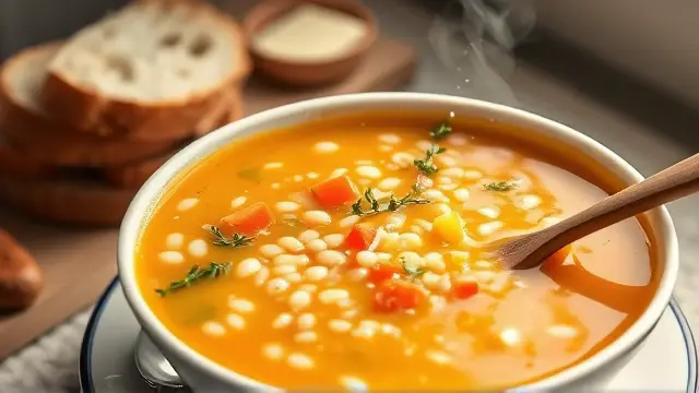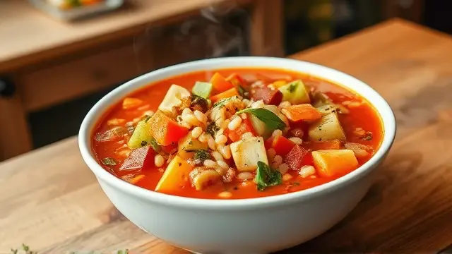 # Pat's Easy Vegetable Soup 🍲🥕 This hearty and flavorful vegetable soup is perfect for a cozy dinner or a quick lunch! Loaded with vegetables and rich in nutrients, this recipe is incredibly easy to make, even on a busy day. Serve it with a piece of crusty bread or a sprinkle of parmesan for that extra touch of comfort! 🍞🧀 ## Ingredients ### For the soup base - 1 (46 oz.) can tomato juice - 2 (10 oz.) packages frozen mixed vegetables - 1 (10½ oz.) can condensed beef broth - 1 cup water - ½ cup Quaker Scotch Brand Quick pearled barley - 1 tablespoon instant minced onion - 1 tablespoon sugar - ½ teaspoon thyme leaves, crushed - 1 bay leaf ## Instructions 1. In a 4-quart saucepan or Dutch oven, combine all the ingredients. 2. Cover and bring to a boil, then reduce the heat. 3. Let it simmer for 10 to 12 minutes or until the barley is tender. > 💡 Pro tip: If you want to elevate the flavors, sauté some minced garlic and chopped onions in a little olive oil before adding the other ingredients. This will add a delightful depth to your soup! ## Variations - **Add Protein**: Toss in some cooked cubed chicken or beans for added protein and heartiness. - **Spicy Kick**: Add a dash of red pepper flakes for a little warmth! - **Herb Garden**: Fresh herbs like basil or parsley can be stirred in just before serving for a fresh, vibrant flavor. ## Storage Tips - Leftover soup can be stored in an airtight container in the refrigerator for up to 4 days. - You can also freeze it for up to 3 months! Just make sure to leave some space in the container for expansion during freezing. ❄️ Yields: Ten 1-cup servings Enjoy your bowl of goodness! 🍽️name