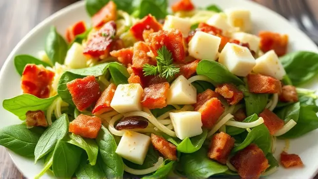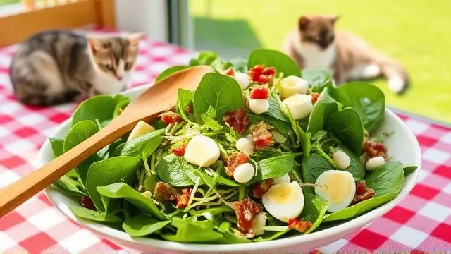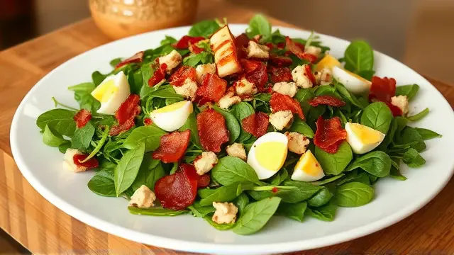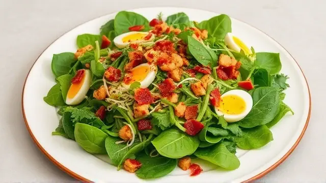 # Betty's Crunchy Bacon Spinach Salad 🥗🥓 This delightful salad is a perfect blend of fresh greens, crispy bacon, and hearty beans that create a satisfying dish for any gathering. With a tangy dressing to bring it all together, Betty's Crunchy Bacon Spinach Salad is both delicious and refreshing! Add it to your next picnic, potluck, or family dinner and watch it become a crowd favorite! 🌟 ## Ingredients ### For the salad - 1 package of fresh spinach (or your favorite mix of greens, including some lettuce for extra crunch) - 1 (#2) can of bean sprouts, drained - 8 slices of bacon, cooked until crispy and crumbled - 2-3 hard-cooked eggs, diced ### For the dressing - 1 cup salad oil (can substitute with olive oil for a healthier option) - 3/4 cup sugar (feel free to adjust to taste or use a sugar substitute) - 1/2 cup ketchup (yes, you read that right—this gives the dressing a unique twist!) - 1 tablespoon instant onion (or substitute with finely chopped fresh onion) - 1/4 cup wine vinegar (balsamic vinegar works great too!) - 1 teaspoon Worcestershire sauce - Salt & pepper to taste ## Instructions 1. In a large mixing bowl, combine the spinach, bean sprouts, crumbled bacon, and diced hard-cooked eggs. 2. In a separate bowl, whisk together all the dressing ingredients until well combined. Taste and adjust the seasoning as needed. > 🥄 For an extra creamy dressing, consider adding a tablespoon of mayonnaise or Greek yogurt to the mix! 3. Pour the dressing over the salad and toss gently to coat all the ingredients. > 🍽️ Serve immediately for the best texture, but if you're making it ahead of time, keep the dressing separate until just before serving to avoid soggy greens. ## Variations - **Vegetarian:** Leave out the bacon and replace it with roasted chickpeas for crunch and protein! 🌱 - **Nutty Twist:** Add a handful of chopped nuts like walnuts or pecans for an extra crunch and flavor boost! - **Fruity Addition:** Toss in some sliced strawberries or mandarin oranges to give the salad a sweet contrast. 🍊 - **Meal Prep Friendly:** Assemble the ingredients without the dressing and store them in the fridge for up to 3 days. Just dress before serving for a fresh taste! Enjoy this sweet and savory salad that’s not just delicious but nutritionally packed! Bon appétit! 🎉🥗name