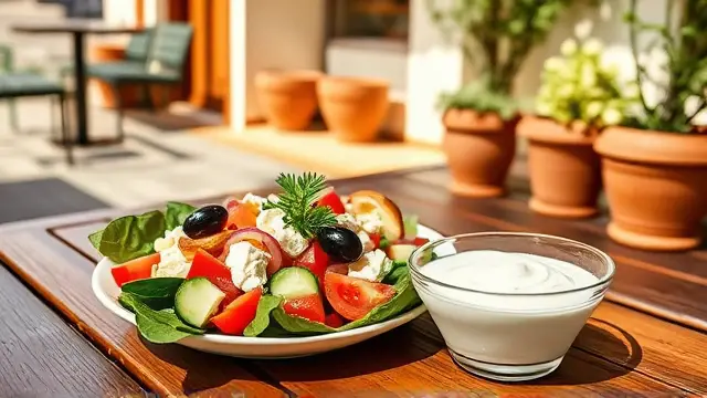 Enjoy your delicious Elliniki Salata with creamy Tzatziki, and savor a taste of Greece right at home! 🇬🇷✨