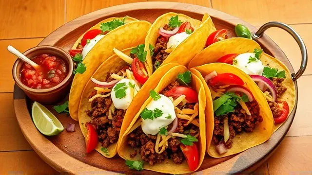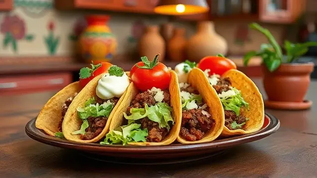 # Kay's Flavorful Taco Seasoning Mix 🌮🌶️ Tacos are a delightful way to bring fun and flavor to your dinner table, and there's nothing quite like homemade seasoning to elevate your tacos to the next level! Kay's Taco Seasoning Mix is simple to prepare, packs a punch of flavor, and can be used in countless ways. Whether you're making classic beef tacos or experimenting with vegetarian options, this mix is sure to impress your family and friends! ## Ingredients ### For the Taco Seasoning Mix - 3 tablespoons chili powder - 2 tablespoons flour - 2 teaspoons ground cumin - 2 teaspoons dried oregano (crushed) - ½ teaspoon onion powder - ½ teaspoon garlic powder - ½ teaspoon salt - ½ teaspoon cayenne pepper ### To Make Tacos - 1 pound ground beef (or your choice of protein) - 1 finely chopped onion - 2 tablespoons chopped canned green chilies - ½ head shredded lettuce - 4 plum tomatoes (chopped) - 1 green onion (finely chopped) - 1½ cups shredded cheddar cheese - 1 cup salsa - ½ cup sour cream - 6 taco shells (soft or hard, your choice!) ## Instructions 1. **Mix It Up**: In a plastic zip-type bag, combine all the seasoning ingredients. Seal the bag and shake until completely mixed. This will make about ½ cup of taco seasoning mix. > 💡 Store any leftover seasoning mix in an airtight container for future taco nights! It’s great for quick meals or adding flavor to soups and stews. 2. **Cook the Meat**: In a skillet, brown 1 pound of ground beef with one finely chopped onion and 2 tablespoons of chopped green chilies. > 👨🍳 For a healthier twist, try ground turkey or a plant-based meat alternative! 3. **Season It**: Once the meat is fully cooked (about 10 minutes), drain off excess fat and stir in about ½ cup of the taco seasoning mix. > 🔥 Feel free to adjust the amount of seasoning based on your spice preference! 4. **Assemble Tacos**: Divide ½ head of shredded lettuce among the 6 taco shells. Fill each shell with the seasoned meat mixture, chopped tomatoes, green onion, shredded cheddar cheese, and top with salsa and sour cream. > 🧄 Want more variety? Add some avocado or guacamole for extra creaminess! ## Tips & Variations - **Vegetarian/Vegan Option**: Substitute the ground beef with black beans, lentils, or a meat substitute. Just adjust cooking times accordingly! - **Spice Level**: For extra heat, add more cayenne pepper or some diced jalapeños to your meat mixture. - **Meal Prep**: Double or triple the seasoning mix and store it for easy taco nights in the future. Enjoy your taco night with Kay’s flavorful taco seasoning mix, and make every bite count! 🌮🎉name