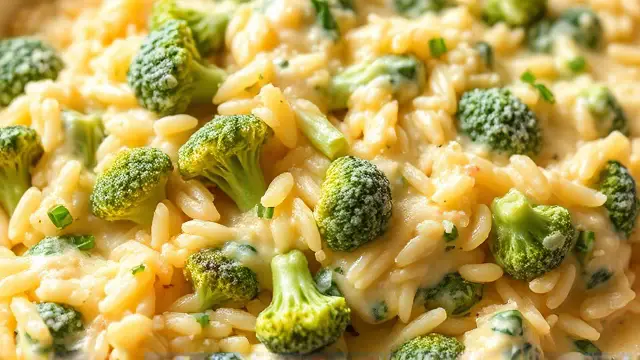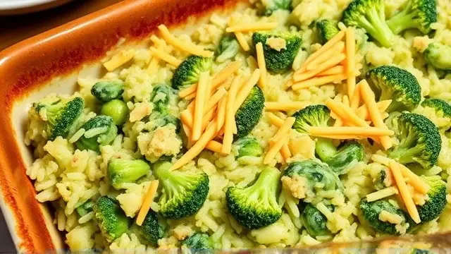 # Lois's Green Rice 🌿🍚 This vibrant and cheesy Green Rice dish is a delightful combination of flavors that’s both comforting and unique! Perfect for family dinners or as a side at celebrations, this recipe is quick to whip up and will leave everyone asking for seconds. Plus, it can be prepared ahead of time and baked just before serving. Imagine a creamy, cheesy, and veggie-packed dish that pairs well with grilled meats or can stand as a hearty vegetarian meal on its own! And don’t hesitate to get creative with your veggies or add your favorite spices for an extra kick. 🌶️👩🍳 ## Ingredients - **2 cups cooked rice** (measured after cooking) - **1 package frozen, chopped broccoli** (cooked and drained) - **1 small jar Cheez Whiz** (for that gooey goodness) - **1 can cream of celery soup** (adds creaminess and flavor) - **2 tablespoons onion** (finely chopped; for a hint of zest) - **½ stick melted margarine** (or butter, if you prefer) > 🥦 You can easily substitute the broccoli with spinach for a different twist or even mix in both for added color and flavor! ## Instructions 1. Preheat your oven to 350°F (175°C). 2. In a large mixing bowl, combine the cooked rice, cooked and drained broccoli, Cheez Whiz, cream of celery soup, chopped onion, and melted margarine. 3. Stir until all the ingredients are well-coated and evenly mixed. > 📏 For an even more delicious dish, consider using leftover rice. It helps the flavors meld together more beautifully! 4. Transfer the mixture to a lightly greased oblong baking dish and spread it out evenly. 5. Cover with foil and bake for 30 minutes, removing the foil for the last 5 minutes to allow the top to crisp slightly. > ⏰ Baking time is adjustable! If using fresh veggies instead of frozen, you may need to increase the bake time slightly to ensure everything is heated through. ## Serving Suggestions - This dish serves 6-8 small portions or 4-5 generous servings. - Consider serving with grilled chicken or a fresh garden salad for a complete meal! 🥗🍗 ## Variations - **Add Protein**: Stir in cooked chicken, shrimp, or even crumbled tofu for a heartier dish. - **Spice It Up**: Add black pepper or a pinch of cayenne for some heat. - **Cheesy Delight**: Mix in some shredded cheddar cheese for an extra cheesy experience! Get ready to impress your family and friends with this creamy, dreamy food that they'll love! Enjoy your cooking adventure! 🎉🍽️name