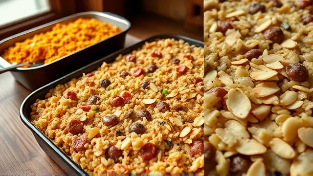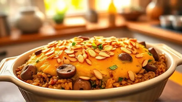 # Lou's Savory Sausage and Wild Rice Casserole 🌾🍖 This hearty casserole is a perfect blend of flavors and textures—savory sausage paired with nutty wild rice topped with crunchy sliced almonds. It's a great dish for family dinners or potlucks, and will leave your guests asking for seconds! Not only is it delicious, but it's also a one-pan wonder that's easy to prepare and bake, making clean-up a breeze. 🧽✨ ## Ingredients ### Main Ingredients - 1 lb sausage (your choice: pork, chicken, or turkey) - 1 cup chopped celery - 1 chopped green pepper - 1 chopped onion - 2 cloves minced garlic ### For the Casserole - 1 package long grain & wild rice (with seasoning packet) - 1 can cream of mushroom soup - 1 can cream of chicken soup - 3 cups chicken broth - 2 cans mushrooms (drained) - 1 can sliced water chestnuts - Sliced almonds for topping ## Instructions 1. **Prepare the Sausage**: In a large skillet, brown the sausage over medium heat until fully cooked. Drain excess fat, if necessary. 2. **Sauté the Vegetables**: Add the celery, green pepper, onion, and minced garlic to the skillet. Cook until tender, about 5-7 minutes. 3. **Mix the Casserole**: In a large bowl, combine the cooked sausage and vegetables with the wild rice (including the seasoning packet), cream of mushroom soup, cream of chicken soup, chicken broth, drained mushrooms, and sliced water chestnuts. Mix well. > 🥄 For a little extra flavor, consider adding a pinch of Italian herbs or some crushed red pepper flakes for a slight kick! 4. **Bake**: Pour the mixture into a lightly greased 3-quart casserole dish or a 9x13 baking pan. Top with sliced almonds for added crunch. 5. **Cooking Time**: Bake uncovered at 350°F for 1.5 hours, or until the rice is tender and the liquid is absorbed. > ⏰ Pro tip: Stir halfway through baking for even cooking and to ensure all that flavor is well distributed. ## Suggestions for Serving - Serve this casserole with a light side salad or steamed vegetables to balance out the hearty flavors! - Pair with crunchy breadsticks or garlic bread for a complete meal experience. 🥖 ## Variations - **Vegetarian**: Swap the sausage for your favorite plant-based sausage and use vegetable broth. - **Spicy**: Incorporate diced jalapeños or hot sausage for a spicy kick—perfect for those who love a little heat! 🌶️ - **Cheesy**: Add a cup of shredded cheese (such as cheddar or mozzarella) directly into the mixture for a melty and rich flavor. With Lou's Sausage and Wild Rice Casserole, you’re bound to bring warmth and comfort to any table. Enjoy the cooking process, and your taste buds will thank you later! 👩🍳🎉name