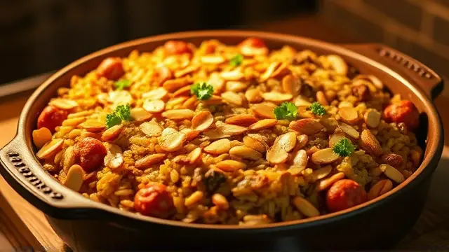 This hearty casserole is a perfect blend of flavors and textures—savory sausage paired with nutty wild rice topped with crunchy sliced almonds. It's a great dish for family dinners or potlucks, and will leave your guests asking for seconds! Not only is it delicious, but it's also a one-pan wonder that's easy to prepare and bake, making clean-up a breeze. 🧽✨