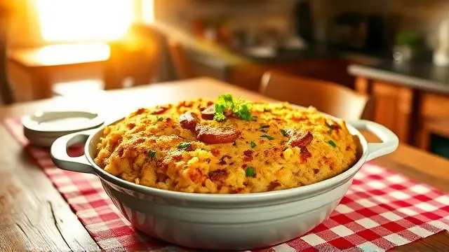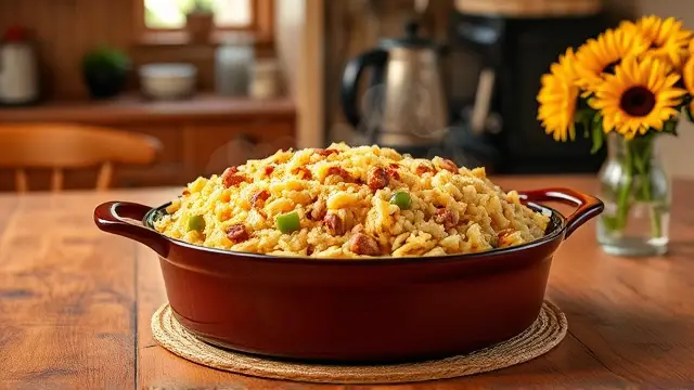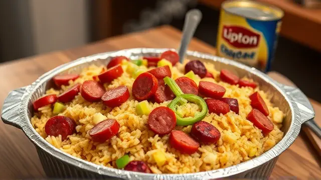 # Dottie's Comforting St. Paul Rice 🌾🍲 This hearty and flavorful St. Paul Rice dish is a family favorite that’s both satisfying and simple to prepare. The combination of sausage, aromatic vegetables, and savory chicken noodle soup creates a delightful one-pot meal that pairs perfectly with a crisp green salad or some crusty bread. Ideal for dinner gatherings or cozy nights in, it serves 6 generous portions, making it perfect for families or leftovers for the week! ## Ingredients ### Main Ingredients - 1 lb. hot or mild sausage (your choice) - 1 large green pepper, chopped - 1 stalk celery, chopped - 1 box Lipton chicken noodle soup (or any brand you prefer) - 4½ cups water - ½ cup long grain rice ## Instructions 1. **Brown the Sausage**: In a large skillet, cook the sausage over medium heat until browned. Drain any excess fat and set aside. > 🌭 Choose your favorite sausage—hot for a spicy kick or mild for a milder flavor. You can also try turkey or chicken sausage for a lighter option! 2. **Sauté the Vegetables**: In the same skillet, add the chopped green pepper and celery. Sauté until the vegetables are tender and translucent, about 5-7 minutes. 3. **Combine Ingredients**: In a large pot, combine the chicken noodle soup, long grain rice, and water. Bring to a boil and let it boil for 7 minutes. 4. **Mix It All Together**: Add the browned sausage, sautéed pepper, and celery to the pot. Stir well to combine all the ingredients. 5. **Bake**: Pour the mixture into a casserole dish, cover it, and bake at 350°F (175°C) for 45 minutes. > 🔥 For a crispy topping, you can uncover the dish for the last 10-15 minutes of baking! ## Variations - **Vegetarian**: Substitute the sausage with a plant-based sausage or tofu and use vegetable broth instead of chicken noodle soup for a delicious meat-free version! 🌱 - **Spicy Kick**: Add a teaspoon of red pepper flakes to the sautéed vegetables for an extra burst of heat! - **Add-ins**: Toss in some frozen peas or corn during the last few minutes of baking for added color and nutrition. ## Tips for Success - **Leftovers**: This dish keeps well in the fridge for up to 3 days, making it great for meal prep. Just reheat in the oven or microwave before serving. - **Freezing**: You can freeze the casserole before baking. Just cover tightly with plastic wrap and foil. Thaw in the fridge overnight before baking as directed. - **Serving suggestion**: Garnish with fresh parsley or chopped green onions for a vibrant touch! Enjoy Dottie's comforting St. Paul Rice and make it your own with personalized touches! 🍽️❤️name