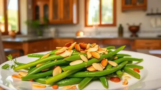 Combine and Serve: Pour the almond-butter mixture over the hot cooked green beans, tossing gently to coat evenly. Serve immediately.