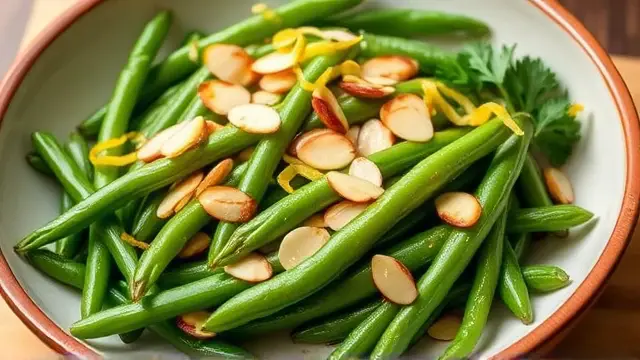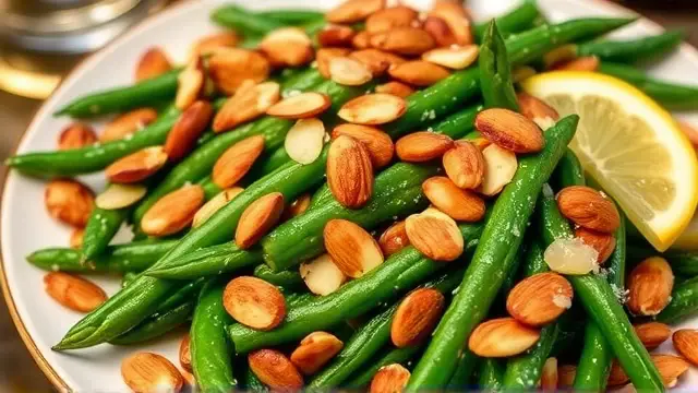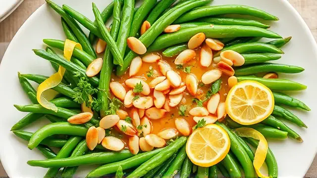 This delightful dish is a perfect blend of tender green beans and crunchy, toasted almonds, all finished off with a touch of lemon for brightness. It's an elegant side that complements any main course beautifully, making it an ideal choice for family dinners or special occasions. Plus, it only takes minutes to prepare!