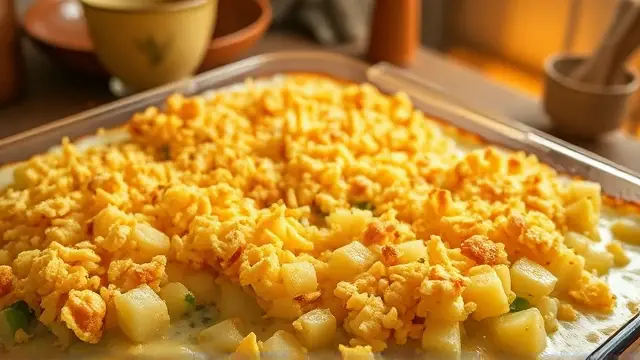 This comforting dish is a hearty side that’s perfect for family gatherings or cozy dinners. Combining tender potatoes with American cheese and a crunchy topping, it’s a favorite that brings a taste of home. You can even prepare it ahead of time for extra convenience!