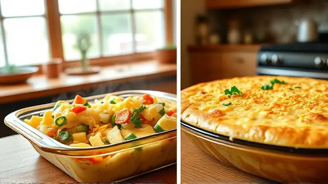 Prepare the Casserole: Pour the mixture into a 1-quart casserole dish and spread it evenly.