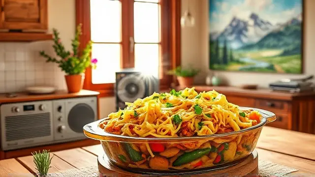 # Lucky's Swiss Vegetable Medley 🥦🧀 This delightful Swiss Vegetable Medley is a creamy, cheesy dish that's perfect for any gathering or family dinner. It's packed with flavor and nutrition, making it a great side dish that's sure to please even the pickiest eaters. Plus, it’s quick to prepare and can be customized with any veggies you have on hand! ## Ingredients ### For the medley - 1 bag frozen California vegetables (thawed and drained) 🥕 - 1 can cream of mushroom soup - 1 cup Swiss cheese, shredded - 1/3 cup sour cream - ¾ tsp. pepper - 1 can Durkee onions (or your favorite crispy onions) ## Instructions 1. **Mix the Ingredients**: In a large bowl, combine the thawed vegetables, cream of mushroom soup, ½ cup of Swiss cheese, sour cream, pepper, and half of the crispy onions. > 🍽️ Feel free to add fresh herbs like thyme or parsley for a burst of flavor! 2. **Prepare the Casserole**: Pour the mixture into a 1-quart casserole dish and spread it evenly. 3. **Bake the Medley**: Cover the casserole with aluminum foil and bake at 350°F (175°C) for 30 minutes. 4. **Add the Toppings**: Remove the foil, sprinkle the remaining Swiss cheese and crispy onions on top, then bake uncovered for an additional 5 minutes until golden and bubbly. > ⏰ Keep an eye on it during the last few minutes to prevent the cheese from over-browning! 5. **Serve and Enjoy**: Let it cool slightly before serving. This dish pairs perfectly with roasted meats or can be enjoyed on its own for a comforting vegetarian option. ## Variations - **Add Protein**: Mix in some cooked chicken or sausage for a heartier dish! 🍗🌭 - **Spicy Kick**: Add a dash of cayenne pepper or a few chopped jalapeños for heat. - **Cheesy Delight**: Experiment with different cheeses like cheddar or mozzarella for varied flavors! - **Vegetable Swap**: Use your favorite frozen or fresh vegetables, such as broccoli or corn, instead of California vegetables. > 🎉 This easy, cheesy dish is sure to be a crowd-pleaser and can be prepped ahead of time for a stress-free meal! Enjoy!name