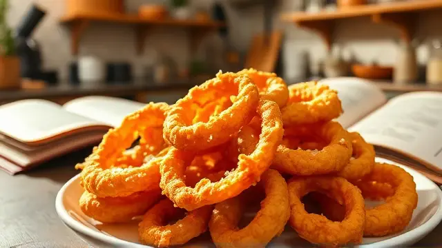 # Pat's Extra Crispy Fried Onion Rings 🧅✨ These Extra Crispy Fried Onion Rings are the ultimate snack or side dish for any gathering! With a light and airy batter that crisps up perfectly, they make for a fantastic complement to burgers, sandwiches, or just enjoyed on their own with your favorite dipping sauce. Get ready for a delicious crunch! ## Ingredients ### For the batter - 1¾ cup pancake mix - ¾ tsp salt - 1 cup club soda ### For the rings - 4 medium sweet onions, cut into ½ inch slices - Oil for deep fat frying ## Instructions 1. **Prepare the Batter**: In a large bowl, combine the pancake mix and salt. Gradually stir in the club soda until the batter is smooth and free of lumps. > 🥄 A smooth batter is key to a light and crispy coating. Don't overmix, as that can lead to a tougher texture! 2. **Slice the Onions**: Carefully separate the onion slices into individual rings. 3. **Coat the Rings**: Dip a few onion rings into the batter, ensuring they are well-coated. Allow any excess batter to drip off. 4. **Heat the Oil**: In an electric skillet or deep saucepan, heat the oil to 375°F (190°C). Use a thermometer for accuracy to achieve that perfect fry! 5. **Fry to Perfection**: Fry the onion rings in batches, about 2-3 minutes per side, or until they turn golden brown and puffed up. > 🔥 Be careful not to overcrowd the pan! This ensures even cooking and better crispiness. 6. **Drain and Serve**: Once golden, drain the rings on paper towels, then season with additional salt while they are hot. 7. **Enjoy!** Serve with ketchup, ranch dressing, or your favorite dipping sauce for an extra flavor boost! ## Tips & Tricks - **Freshness Matters**: For the best flavor, use sweet onions like Vidalia or Walla Walla. - **Make it Spicy**: Add a dash of cayenne pepper or your favorite seasoning blend to the batter for an extra kick! 🌶️ - **Air Fryer alternative**: Try using an air fryer for a healthier version! Just spray the coated rings lightly with oil and air fry at 400°F for about 10 minutes, flipping halfway. ## Serving Suggestions These crispy delights are a perfect accompaniment to: - **Burgers**: Create your ultimate burger and onion ring combo! - **BBQ Ribs**: The crispy texture pairs beautifully with savory barbecue flavors. - **Game Day Snacks**: Serve with a variety of dips for your friends to enjoy during the big game! 🎉 ## Makes: 4-6 servings Gather your friends and family around for a deliciously crispy treat that everyone will love! 🥳name