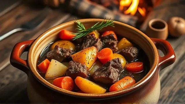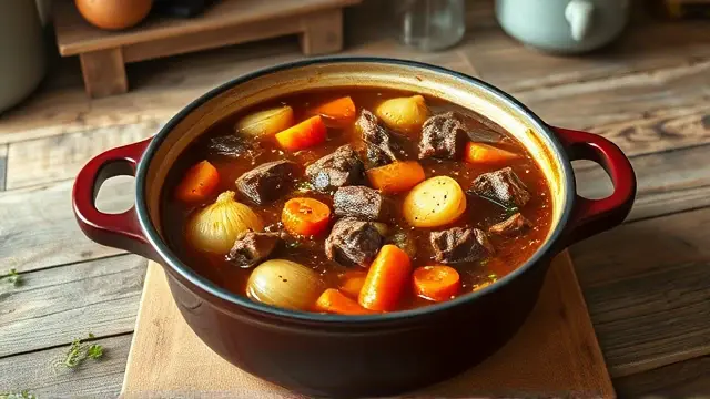 # Barbara's Slow Baking Savory Stew 🍲🥕 This hearty Slow Baking Savory Stew is a comforting dish perfect for chilly days or family gatherings. With tender chunks of beef and a medley of vegetables simmered to perfection, it's sure to warm your soul! Serve it with crusty bread for a complete meal that everyone will love. 🥖❤️ ## Ingredients ### For the stew - 2 lbs. boneless beef chuck, cut into 1" cubes - 4 cups water - 1 tsp. lemon juice - 1 tsp. Worcestershire sauce - 1 clove garlic, minced - 1 medium onion, sliced - 1 small bay leaf - 2 tsp. salt - ¼ tsp. pepper - Pinch allspice - 1 tsp. sugar - 6 carrots, quartered - 8 small whole onions - 3 medium potatoes, pared and cut into eighths ### For thickening - Few drops bottled brown bouquet sauce - 1 cup cold water - ½ cup flour ## Instructions 1. Preheat your oven to 325°F (165°C). 2. In a Dutch oven, combine the beef, 4 cups of water, lemon juice, Worcestershire sauce, minced garlic, sliced onion, bay leaf, salt, pepper, allspice, sugar, carrots, whole onions, and potatoes. > 🌿 This dish gets better with time, so feel free to make it a day ahead and reheat it for even more flavor! 3. Cover the Dutch oven, and bake for 4 hours, or until the meat is tender and the flavors meld beautifully. 4. When the stew is done baking, remove it from the oven. In a jar, combine the bouquet sauce, 1 cup cold water, and flour. Shake until well blended. 5. Stir this mixture into the stew and heat over medium, stirring constantly until it comes to a boil. > ⚠️ Be careful while stirring—it can bubble up! Boil and stir for just 1 minute until thickened. ### Serving Suggestions - This stew serves 6 to 8, making it perfect for family meals or dinner parties. Consider topping it with fresh parsley for an extra burst of color and flavor! 🌱 ## Variations - **Vegetable Version**: Substitute beef with hearty vegetables like mushrooms, zucchini, and bell peppers for a delicious vegetarian stew! - **Spicy Twist**: Add diced jalapeños or a pinch of cayenne pepper to give it a kick! 🌶️ - **Herb Infusion**: Experiment with fresh herbs like thyme or rosemary for additional depth in flavor. ## Fun Facts - This stew is a classic comfort food that many families cherish across cultures—there's nothing quite like a warm bowl on a cold night! - Cooking with a Dutch oven allows for even heat distribution, ensuring your stew is perfectly cooked throughout. Enjoy your culinary adventure with this delightful stew! 🍽️❤️name
