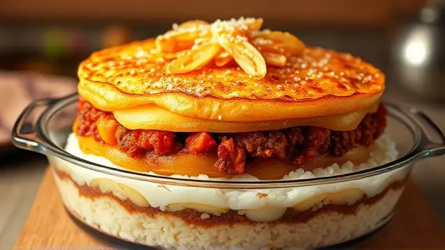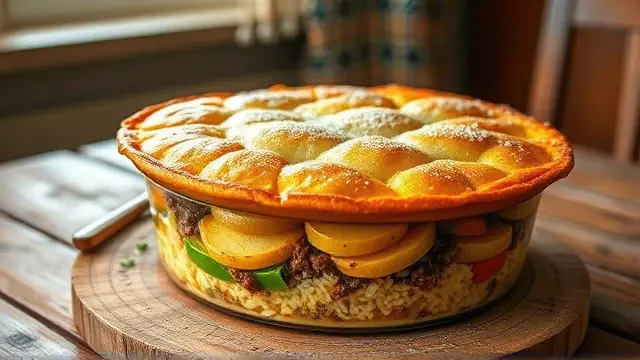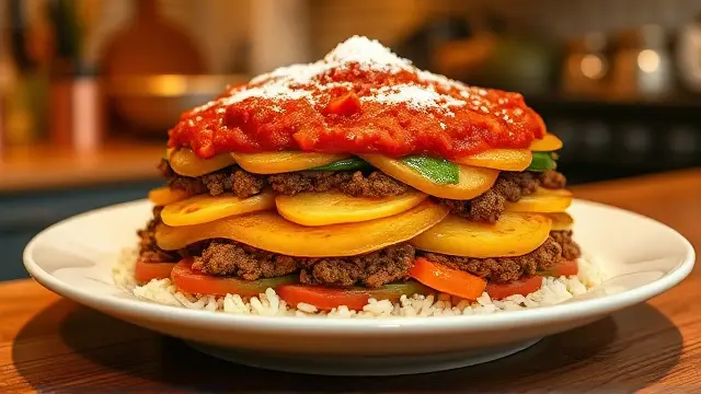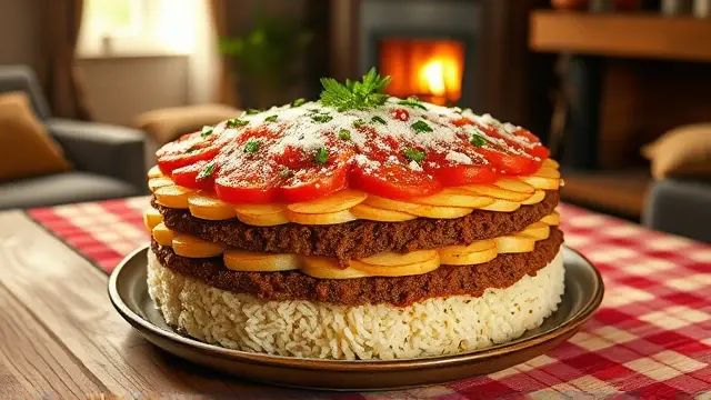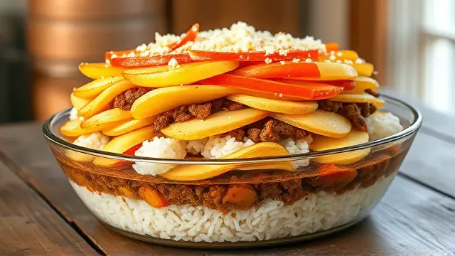 # Blanche's Hearty Six-Layer Dinner 🍽️🥔🥕 This comforting and nutritious dish is a family favorite that's packed with flavors and textures! With its satisfying layers, it's not just a meal but a charming centerpiece for your dining table. Perfect for busy weeknights or Sunday family gatherings, this hearty dinner comes together with minimal prep and delivers maximum flavor. Give it a try and prepare to impress! ## Ingredients ### Layered Goodness - 3 medium-sized raw potatoes, sliced thinly - 1/3 cup uncooked rice (white or brown) - 1½ lbs. ground beef (or a plant-based alternative for a vegetarian option) - 1 large onion, sliced - 2 medium carrots, sliced - 1 green bell pepper, chopped - 2 tbsp. salt (adjust to taste) - 1 tsp. sugar - 1 quart canned tomatoes or tomato juice (tinned tomatoes work great!) ## Instructions 1. Preheat your oven to 350°F (175°C). 2. **Layer the base**: Start by placing a one-inch layer of sliced potatoes in a buttered deep baking dish. 3. **Add the rice**: Sprinkle the uncooked rice evenly over the potatoes. 4. **Ground beef layer**: Spread the ground beef evenly over the rice, ensuring it's well distributed. 5. **Vegetable layers**: Add the sliced onions followed by the carrots and green bell pepper in layers, creating a colorful display. 6. **Tomato goodness**: In a bowl, combine the canned tomatoes (or juice), salt, and sugar. Pour this mixture generously over the layers of vegetables in the dish. 7. **Bake to perfection**: Cover the dish tightly with aluminum foil and bake in the preheated oven for 2½ to 3 hours, or until potatoes and rice are tender. > ⏰ **Tip**: If you're short on time, you can slice the potatoes and veggies thinly to reduce baking time. Check for tenderness around the 2-hour mark! ## Variations - **Vegetarian**: Substitute the ground beef with a blend of lentils or cooked black beans for a protein-rich option that's just as hearty. - **Spicy Kick**: Add some diced jalapeños or crushed red pepper flakes between the layers for a spicy touch! 🌶️🔥 - **Herbs and Seasoning**: Feel free to include your favorite herbs such as basil or thyme for an aromatic twist. - **Cheesy Delight**: Sprinkle cheese on top during the last 30 minutes of baking for a delicious cheesy crust. ## Serving Suggestions Serve hot, ideally with a side of crusty bread to soak up the delicious juices. This dish also pairs well with a simple side salad for a fresh crunch! 🥗 Enjoy your cooking adventure with this delightful Six-Layer Dinner! Your family and friends will be coming back for seconds! 🍽️❤️name