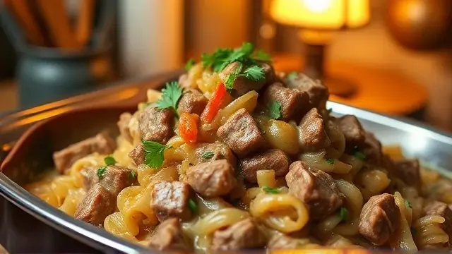 This comforting dish brings the classic flavors of beef stroganoff to your table with an easy twist—using round steak and creamy soups to create a hearty, satisfying meal. Perfect for family dinners or a cozy night in, this recipe blends rich flavors into a delightful sauce that pairs beautifully with noodles, rice, or potatoes. Add a glass of red wine to elevate the experience and enjoy with loved ones! 🍷💖