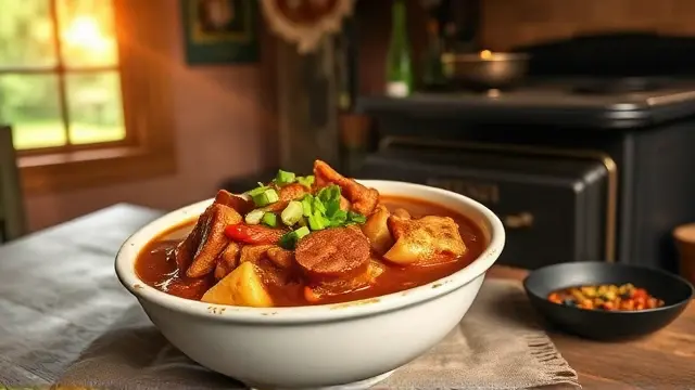 # Judy's Hearty Chicken Gumbo 🍲🐔 This flavorful Chicken Gumbo is a heartwarming dish that brings the essence of New Orleans cuisine right to your kitchen. Packed with tender chicken, aromatic spices, and a touch of smokiness from sausage, it's perfect for a cozy dinner or a festive gathering. Serve it over rice for a complete meal, and maybe add some warm, crusty bread to soak up the delicious broth! 🥖🌿 ## Ingredients ### For the Gumbo - 1 whole chicken or turkey - 1 onion, diced - 2 stalks of celery, chopped - 1 cup of flour - ½ cup of oil (vegetable or canola) - 1 bell pepper, chopped (green, red, or yellow) - 4 cloves of garlic, minced - ½ cup of fresh parsley, chopped - 1 to 2 pounds of smoked sausage, sliced (Andouille or your favorite) - Salt and pepper to taste - 1 teaspoon dried thyme - Hot sauce (to taste) - 4 to 6 cups of water or chicken broth - Cooked rice (for serving) - Optional: Cooked okra for added texture ## Instructions 1. **Prepare the Broth**: In a large pot, boil the chicken or turkey with the diced onion and chopped celery in enough water (or broth) to cover it. Let it simmer for at least two hours until fully cooked. Once done, remove the chicken, strain the broth, and set aside. > 🥄 A great tip is to save the strained veggies, chop them up, and add them back into the gumbo for extra flavor! 2. **Make the Roux**: In a clean pot, heat the oil over medium heat. Gradually whisk in the flour and cook slowly, stirring continually until the roux reaches a deep caramel color. This step is key for rich flavor, so be patient! > 🌟 Don’t rush this process! A properly made roux is essential for depth in your gumbo. 3. **Add Vegetables**: To the roux, add the chopped onion, celery, bell pepper, minced garlic, and parsley. Cook these for about 10 minutes, until softened and fragrant. 4. **Combine Ingredients**: Gradually pour in your prepared broth, stirring continuously to incorporate it well into the roux. Add the chopped chicken back into the pot. 5. **Sausage Time**: In a separate pan, brown your sausage over medium heat, then add it to the gumbo. Season with salt, pepper, thyme, and hot sauce to taste. 6. **Simmer**: Let your gumbo cook for about an hour, allowing all those flavors to blend beautifully. If using, add in the cooked okra during the last 10 minutes of cooking. 7. **Serve**: Spoon the gumbo into bowls over a generous helping of rice. Enjoy the comforting and rich flavors of this classic dish! > 🌶️ Feel free to adjust the hot sauce according to your heat preference. You can always serve extra on the side! ## Variations - **Seafood Twist**: Substitute the chicken with shrimp or crab for a delicious seafood gumbo! Adjust cooking time to just a few minutes, as seafood cooks quicker. - **Spicy Kick**: Add diced jalapeños or a few dashes of cayenne pepper to spice things up even more. 🔥 - **Vegetarian Option**: Use vegetable broth and replace chicken with hearty vegetables such as bell peppers, zucchini, and mushrooms. Add extra spices to mimic the flavors of smoked sausage. - **Cooking Shortcuts**: For a quicker version, you can use rotisserie chicken and canned broth. Just skip the boiling step and directly mix it in with the roux! Embrace the warmth and tradition of Judy’s Chicken Gumbo in your home; it’s sure to become a family favorite! 🌟🥰name