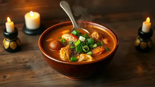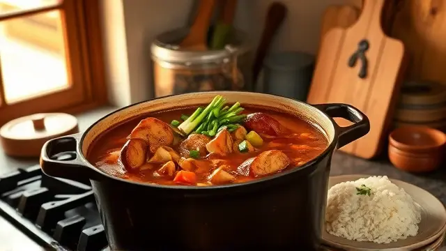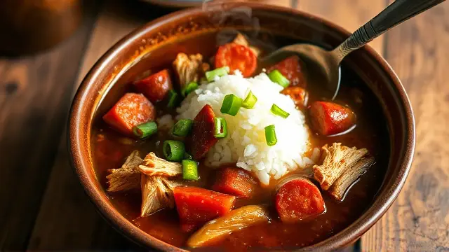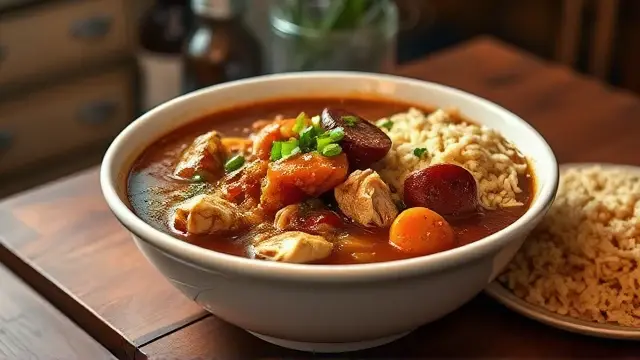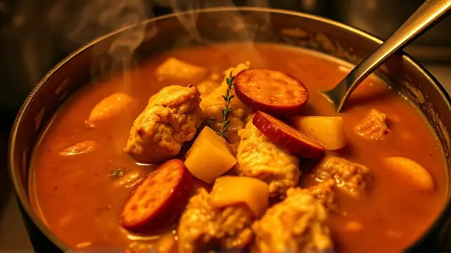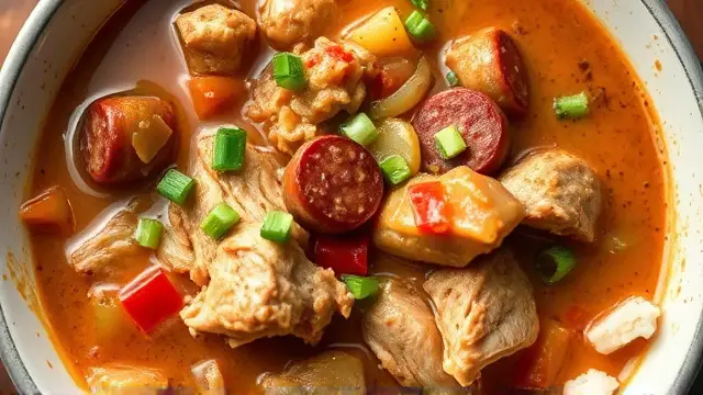 Vegetarian Option: Use vegetable broth and replace chicken with hearty vegetables such as bell peppers, zucchini, and mushrooms. Add extra spices to mimic the flavors of smoked sausage.