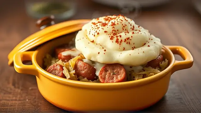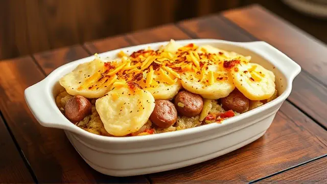 This hearty casserole combines savory sausage, tangy sauerkraut, and creamy mashed potatoes for a delicious one-dish meal that's perfect for family gatherings or a cozy night in. It's simple to prepare and is packed with flavor, making it a comfort food classic. Pair it with a side salad to balance the richness, or enjoy it with a slice of crusty bread! 🍞🥗