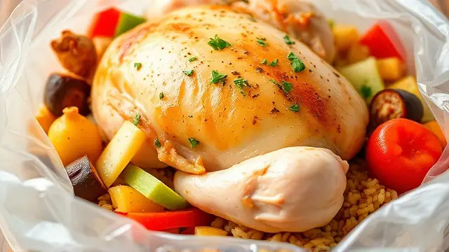 🥡 Make sure to seal the bag properly and pierce it as instructed—this allows steam to escape, helping the chicken and veggies cook perfectly!