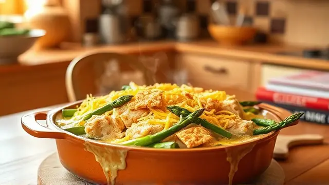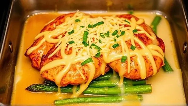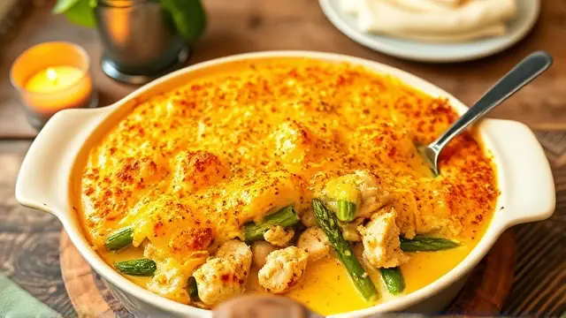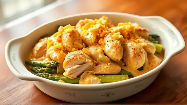 This hearty and comforting dish is perfect for a family dinner or a gathering with friends. The combination of tender chicken, earthy asparagus (or broccoli), and a creamy sauce topped with sharp cheddar cheese creates a flavor explosion that will have everyone asking for seconds. Plus, it comes together in just under an hour, making it a great weeknight meal!