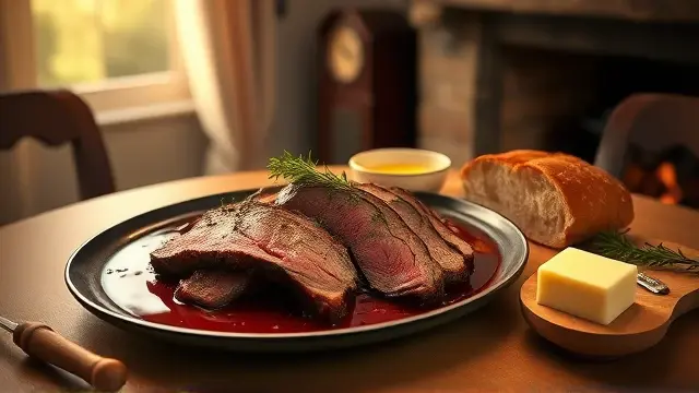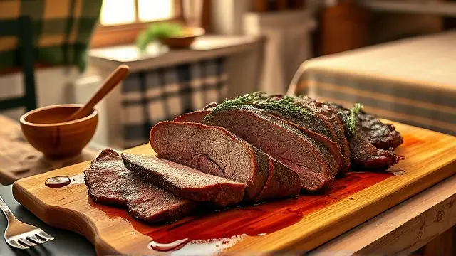 # Judy's Savory Brisket 🥩✨ This delectable brisket recipe is a family favorite that brings comfort and flavor to any gathering! The marinating process ensures the meat is tender and infused with zesty flavor. Perfect for a Sunday dinner or a special occasion, this dish is even better when made a day in advance, giving the flavors time to develop beautifully. Serve it with mashed potatoes or roasted veggies for a complete meal! 🥔🥦 ## Ingredients ### For the Brisket - 4 lbs fresh beef brisket (trimmed) - 1 bottle Italian salad dressing (for marinating) - 1 packet Lipton onion soup mix ### For the Gravy - Refrigerated drippings from the brisket - Optional: flour or cornstarch for thickening ## Instructions 1. **Marinate the Brisket**: Place the trimmed brisket in a large zip-top bag or dish, pour in the Italian salad dressing, and marinate for at least 1 hour, but up to 24 hours for maximum flavor. Make sure to turn it occasionally to evenly coat the meat. > 🕰️ The longer you marinate, the more tender and flavorful the brisket will be. Just don’t forget to turn it! 2. **Prepare for Baking**: Preheat your oven to 225°F (107°C). Place the marinated brisket fat side down in a 9x12 baking dish. Sprinkle the onion soup mix evenly over the top. 3. **Bake It**: Cover the dish tightly with aluminum foil to lock in all the moisture. Bake in the preheated oven for 3-4 hours, or until the brisket is fork-tender. 4. **Slice and Serve**: Once done, remove it from the oven and let it cool slightly. For the best slicing experience, cool the brisket in the refrigerator before slicing thinly against the grain. This ensures maximum tenderness with each bite. > 🔪 Slicing against the grain is crucial for tender slices. Take your time here! 5. **Make the Gravy**: After refrigerating, skim the fat from the drippings. Use the drippings to make gravy by simmering with a bit of flour or cornstarch mixed in to thicken. > 🍽️ A delicious homemade gravy will elevate this dish even further! ## Tips & Variations - **Make-ahead Magic**: This recipe is fantastic for meal prep. Making it one day in advance not only saves time but also lets the flavors meld beautifully. Just reheat before serving! - **Add Veggies**: Consider adding carrots and potatoes to the baking dish for a one-pan meal. They’ll soak up all those delicious juices! - **Spice It Up**: Feel free to add your favorite herbs or spices to the marinade, like garlic powder or black pepper for an extra kick. Transform your dinner table with Judy's savory brisket, and watch your loved ones come back for second helpings! Enjoy! 🍽️🥳name