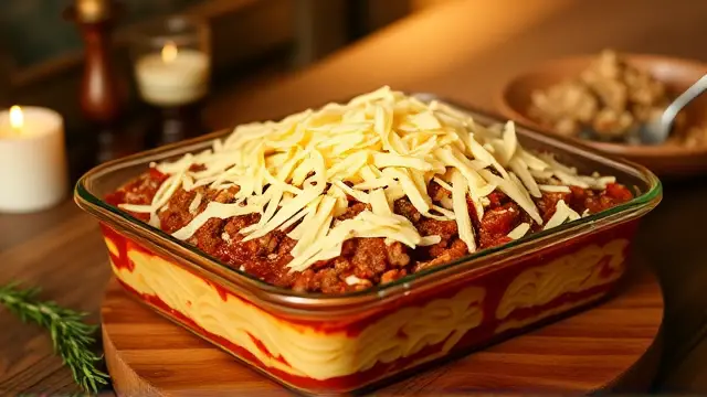 # Joan's Italian Delight 🇮🇹🍽️ This hearty Italian dish combines the flavors of savory meat and creamy cheeses, creating a delightful meal that's perfect for family gatherings or weeknight dinners. Easy to prepare and oh-so satisfying, this recipe will have everyone coming back for seconds! Pair it with a fresh side salad or garlic bread for a complete Italian experience. 🥗🍞 ## Ingredients ### For the meat sauce - 1 lb. lean ground beef or ground turkey - 1 medium onion, chopped - 1 can mushroom pieces, drained - 1 - 14 oz. jar pizza sauce or tomato sauce - 1 tsp. salt (optional) - ½ tsp. garlic powder - ¾ tsp. pepper - 1 tbsp. sugar - 1 tbsp. Worcestershire sauce ### For the cheese mixture - ½ cup sour cream - 1 - 3 oz. pkg. cream cheese, softened - 2/3 cup cottage cheese (or ricotta) - 1 egg (or Egg Beater to equal) ### For the topping - 1 - 4 oz. low-fat mozzarella cheese, shredded - Grated Italian cheese (for sprinkling) ### For the noodle layer - 1 - 8 oz. pkg. of egg noodles, cooked, drained, and rinsed ## Instructions 1. In a large skillet, brown the ground meat over medium heat until fully cooked. Drain off any excess fat. 2. Add the chopped onion, drained mushrooms, pizza sauce, and seasonings (salt, garlic powder, pepper, sugar, Worcestershire sauce) to the meat. Simmer for about 15 minutes to meld the flavors together. > 🍳 Tip: For extra flavor, sauté the onions with the meat until they are softened before adding the other ingredients! 3. In a separate bowl, mix together the sour cream, softened cream cheese, cottage cheese (or ricotta), and egg until smooth and creamy. 4. Cook the egg noodles according to the package instructions, then drain and rinse them under cold water. 5. Preheat your oven to 350°F (175°C). Grease a 13x9x2 inch baking dish. 6. Spread the cooked noodles across the bottom of the dish like a crust. 7. Pour the meat sauce over the noodle layer, spreading it evenly. 8. Next, spread the creamy cheese mixture over the meat sauce, followed by a layer of shredded mozzarella cheese. 9. Finally, sprinkle grated Italian cheese on top for an added cheesy goodness. > 🧀 Pro Tip: To make it extra cheesy, feel free to add more mozzarella or other cheeses of your choice on top! 10. Bake in the preheated oven for 30 minutes, until bubbly and golden on top. ## Serving Suggestions - **Garnish**: Finish with fresh basil or parsley for a touch of color and additional flavor. - **Pairing**: Serve with a robust red wine, such as Chianti, to complement the flavors of the dish. ## Variations - **Vegetarian**: Substitute ground meat with lentils or an assortment of sautéed vegetables for a delicious meatless option. - **Spicy**: Add crushed red pepper flakes or diced jalapeños to the meat sauce for an extra kick! - **Healthy twist**: Use turkey or chicken for the meat, low-fat dairy options for the cheese, and whole wheat noodles for added fiber. Enjoy this comforting dish, and don’t hesitate to share your own twists in the comments! 🍽️❤️name