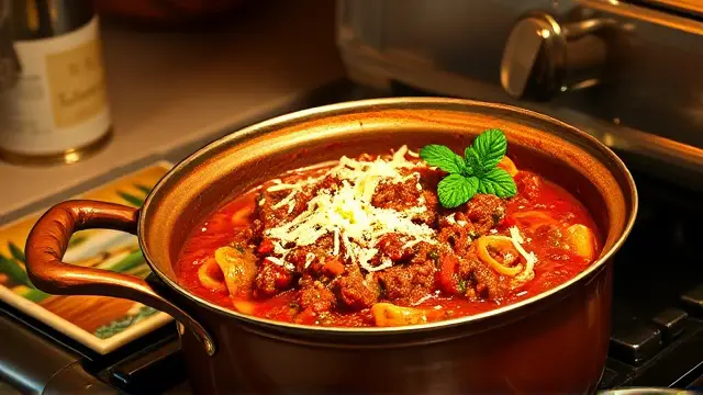 # Kay's Heartwarming Italian Meat Sauce 🍝🍷 This classic Italian meat sauce is rich in flavor and sure to become a family favorite. Perfect for spaghetti night or any cozy gathering, this sauce simmers for hours to develop its depth. It’s a delightful way to bring everyone to the table—and don’t forget the sprinkling of cheese on top for that finishing touch! 🧀✨ ## Ingredients ### For the sauce - ½ lb ground beef - ½ small onion, finely chopped - 12 oz tomato paste - 2 cans (10½ oz each) tomato sauce - 1 tbsp salt - ½ tsp pepper - ½ tsp fennel seed - 2 tsp dried basil - 2 tsp dried oregano - ¼ tsp garlic powder or 1 clove crushed - ¼ tsp sugar - ⅛ tsp cinnamon - 2 cans (tomato paste) warm water (or enough to achieve desired consistency) ### For serving - Spaghetti noodles - Grated Parmesan cheese - Optional: A splash of red wine ## Instructions 1. In a large skillet, brown the ground beef along with the chopped onion until the meat is fully cooked. Drain any excess drippings to keep the sauce light and healthy. > 🍳 Browning the meat and onions brings out their natural flavors and adds a nice depth to your sauce. 2. Stir in the tomato paste, tomato sauce, and all the spices: salt, pepper, fennel, basil, oregano, garlic, sugar, and cinnamon. Mix well to combine. > 🔄 Feel free to adjust the spices according to your taste! A pinch more of fennel will give it a more authentic Italian flavor. 3. Gradually add warm water to the sauce until you reach your desired consistency. Bring to a boil, then reduce the heat and let it simmer for at least 2 hours. > ⏲️ The longer you simmer, the richer and deeper the flavors become, so if you have the time, let it cook for even longer! 4. About 10 minutes before serving, stir in a tablespoon of red wine for added depth and complexity. 5. Serve your delicious meat sauce over al dente spaghetti noodles and generously sprinkle with grated Parmesan cheese. > 🍝 Try pairing it with a side of Veal Parmesan for a heartier meal and some crusty bread to mop up the sauce! ## Variations - **Turkey or Chicken**: Substitute ground beef for ground turkey or chicken for a leaner option. - **Vegetarian**: Replace the meat with sautéed mushrooms or lentils and use vegetable broth instead of water. - **Spicy**: Add a pinch of red pepper flakes to kick up the heat! ## Tips - **Make Ahead**: This sauce freezes beautifully! Prepare it in bulk and save some for those busy weeknights. Just thaw overnight in the fridge before reheating. - **Serve with Flair**: Garnish with fresh basil leaves and additional cheese for a restaurant-quality presentation! Enjoy your culinary adventure with Kay's Italian Meat Sauce! Buon appetito! 🍽️❤️name