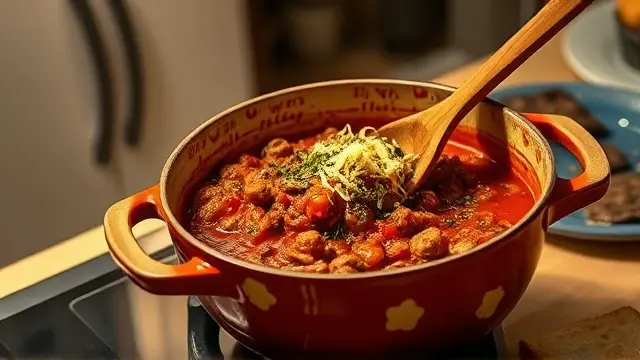 About 10 minutes before serving, stir in a tablespoon of red wine for added depth and complexity.