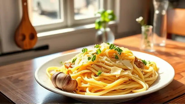 # Judy's Classic Spaghetti with White Clam Sauce 🍝🦪 Dive into this delightful pasta dish that’s both simple and sophisticated! With the salty sweetness of clams and the aromatic kick of garlic, this recipe is perfect for cozy weeknight dinners or an impressive gathering with friends. The best part? It comes together in no time! Pair it with a crisp white wine and a side salad for a complete meal that will transport you straight to a seaside trattoria. 🍷🥗 ## Ingredients ### For the spaghetti - 1 package (6 or 7 oz) uncooked spaghetti - ½ cup butter or margarine - 2 cloves garlic, finely chopped - 2 tablespoons fresh parsley, snipped (plus more for garnish) - 2 cans (6½ oz each) minced clams, undrained - ½ cup grated Parmesan cheese ## Instructions 1. **Cook the Spaghetti**: Bring a pot of salted water to a boil. Add the spaghetti and cook as directed on the package. Once done, drain and set aside. 2. **Prepare the Sauce**: In a saucepan over medium heat, melt the butter. > 🥄 *Tip*: Keep an eye on the butter to avoid burning; you want it melted, not browned! 3. Add the finely chopped garlic to the melted butter and sauté until light brown and fragrant, about 1-2 minutes. 4. Stir in the parsley and the undrained clams. Bring the mixture to a gentle boil. > 🍽️ *Flavor Boost*: Consider adding a pinch of red pepper flakes for a little heat! 5. Once boiling, reduce the heat and let it simmer uncovered for about 3 to 5 minutes to allow the flavors to meld. 6. **Combine and Serve**: Pour the clam sauce over the hot spaghetti, tossing until well coated. Serve hot, sprinkled with extra Parmesan cheese and parsley. > 🌿 *Garnish Idea*: Adding a squeeze of fresh lemon juice before serving brightens up the dish beautifully! ## Serving Suggestions This recipe yields approximately 4 servings, making it a great choice for family dinners or an intimate gathering. It pairs perfectly with: - **White Wine**: A chilled Pinot Grigio complements the clam sauce wonderfully. - **Side Salad**: A simple mixed greens salad with a lemon vinaigrette adds a refreshing crunch. ## Variations - **Gluten-Free**: Substitute regular spaghetti with gluten-free pasta of your choice. - **Vegetarian**: Skip the clams and add sautéed mushrooms instead for a meaty texture. - **Extra Creamy**: Stir in a splash of heavy cream into the clam sauce for a richer flavor. Enjoy the tastes of Italy right at home with this quick yet elegant dish! Buon Appetito! 🍽️✨name