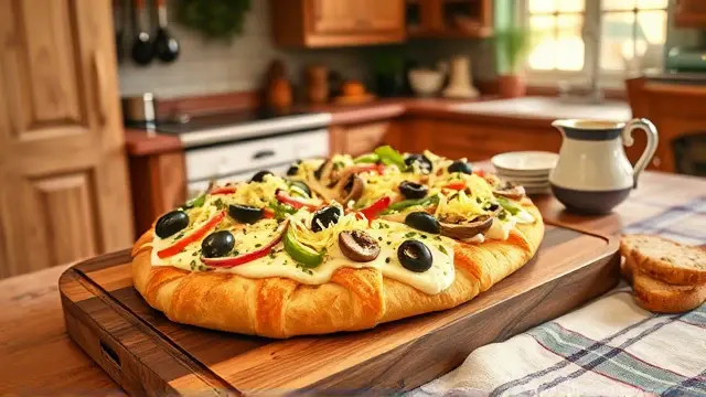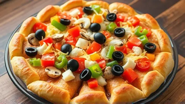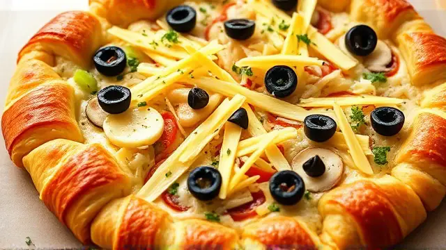 Prepare the crust: Spread the crescent rolls on a cookie sheet, making sure to press the seams together. Bake at 375°F (190°C) for about 15 minutes or until golden brown.