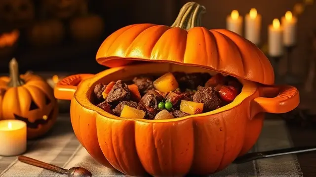 This hearty and comforting stew is perfect for chilly evenings and festive gatherings. The unique twist of serving it in a pumpkin adds a fun and seasonal flair, making it not just a meal, but an experience! 🍂✨ The rich flavors of beef and spices mingle beautifully, and the pumpkin provides a delightful backdrop for the warmth of this dish.