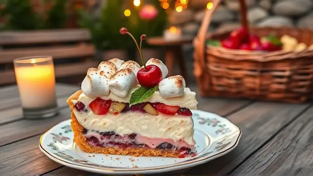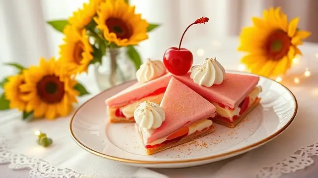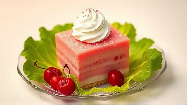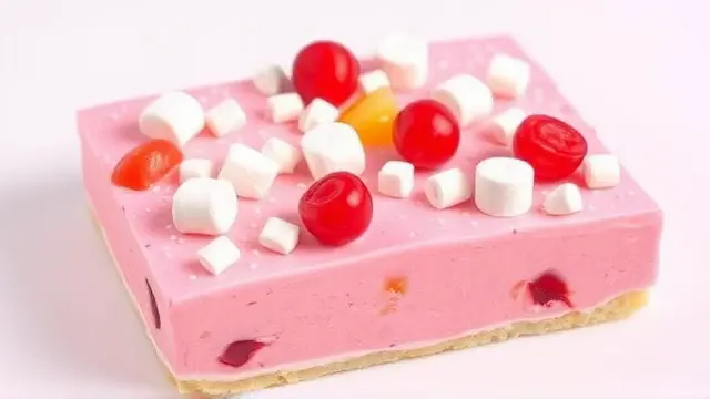 # Judy's Rosy Fruit Cocktail Slices 🍒🍬 This delightful fruit cocktail treat is a nostalgic favorite that's as colorful as it is flavorful! Perfect for parties, picnics, or holiday gatherings, it features a creamy, dreamy texture that’ll keep everyone coming back for more. The vibrant fruit and marshmallows create a beautiful presentation, making it an eye-catching addition to any dessert table. ## Ingredients - **Creamy Base** - 2 - 3 oz. cream cheese, softened - 1 cup mayonnaise - 1 cup heavy cream, whipped - **Fruit & Sweetness** - 1 can (#2½, about 3¾ cups) fruit cocktail, well drained - ½ cup drained maraschino cherries, quartered - 2½ cups large marshmallows, cut up (or you can use miniature marshmallows) - **Coloring** - A few drops of red food coloring or cherry juice (for that rosy hue!) ## Instructions 1. **Prepare the Creamy Base:** - In a mixing bowl, soften the cream cheese and blend it smoothly with the mayonnaise. - Gently fold in the whipped heavy cream until well combined. > 🌟 *Pro Tip:* Make sure the cream cheese is at room temperature for a smoother blend. 2. **Combine the Goodies:** - Add the drained fruit cocktail, maraschino cherries, and marshmallows to the creamy mixture. Mix gently to not break the fruit or marshmallows. 3. **Chill and Freeze:** - Pour the delightful mixture into two 1-quart round ice cream or freezer containers. - Freeze until firm, which usually takes about 6 hours or you can leave it overnight for the best results. 4. **Serve Up the Goodness:** - When ready to serve, let the containers stand for a few minutes at room temperature. - Remove from the container, slice into portions, and serve on a bed of crisp lettuce for a beautiful contrast. Garnish with additional cherries if desired! > 🍽️ *Serving Suggestion:* It also pairs wonderfully with a rich chocolate sauce drizzled on top for a decadent twist! ## Variations - **Tropical Delight:** Swap out the fruit cocktail for tropical fruits like pineapple, mandarin oranges, or kiwi for a refreshing twist! 🍍🥝 - **Nutty Addition:** Stir in chopped nuts for a crunchy texture that adds a savory contrast to the sweetness. - **All-Vegan:** Replace cream cheese with a dairy-free alternative, use vegan mayo, and opt for coconut cream instead of heavy cream for a dairy-free version. - **Berry Bliss:** Incorporate assorted berries (like strawberries or blueberries) for a pop of freshness and an extra burst of flavor! This Rosy Fruit Cocktail Slices recipe makes 10 to 12 servings, perfect for sharing with family and friends! Enjoy this delightful treat and watch as it becomes a beloved addition to your recipe collection! 🌈✨name