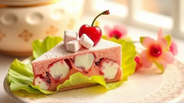 - Remove from the container, slice into portions, and serve on a bed of crisp lettuce for a beautiful contrast. Garnish with additional cherries if desired!