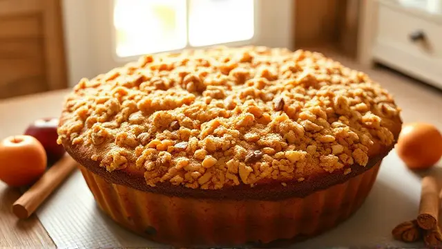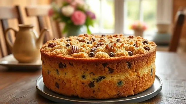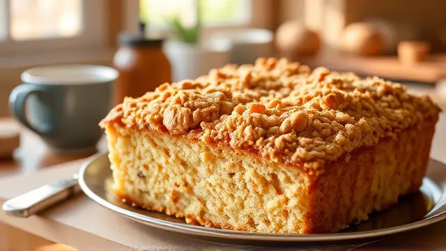 # Judy's Irresistible Coffee Cake ☕🍰 This delightful coffee cake is a fantastic treat for breakfast or as an afternoon snack with your favorite cup of coffee. Its rich, buttery flavor complemented by a sweet cinnamon topping makes it a cozy addition to any gathering. Perfect for brunch or anytime you want to indulge your senses! Pair it with a hot cup of coffee or tea for the ultimate experience. ☕✨ ## Ingredients ### For the batter - 2½ cups all-purpose flour - ¾ cup granulated sugar - 1 cup packed brown sugar - 1 tsp salt - ¾ cup salad oil - 1 egg - 1 tsp baking powder - 1 tsp nutmeg - 1 tsp baking soda - 1 cup buttermilk ### For the topping - ¾ cup reserved crumb mixture - 2 tsp ground cinnamon ## Instructions 1. **Create the crumb mixture**: In a large bowl, mix the flour, granulated sugar, brown sugar, salt, and salad oil with a fork until you reach a crumbly texture. > 🔍 *Tip: Make sure to break up any clumps of brown sugar for an even mixture.* 2. **Reserve the topping**: Set aside ¾ cup of the crumb mixture for the topping. To the reserved portion, stir in the ground cinnamon and set aside. 3. **Combine the batter ingredients**: To the remaining crumb mixture, add the egg, baking powder, nutmeg, baking soda, and buttermilk. Mix well using an electric mixer until fully combined. > 🥄 *Pro Tip: Avoid over-mixing; just blend until smooth to keep your cake light and fluffy.* 4. **Bake**: Pour the batter into a greased and floured 9x9 inch baking pan. Sprinkle the cinnamon crumb topping evenly over the batter. 5. **Perfectly bake**: Bake in a preheated oven at 350°F (175°C) for about 50 minutes or until a toothpick inserted in the center comes out clean. 6. **Cool and serve**: Allow the cake to cool slightly in the pan before cutting into squares and serving. > 🍽️ *Serving suggestion: Drizzle with a simple glaze made of powdered sugar and milk for an extra touch!* ## Variations - **Nutty Delight**: Add ½ cup of chopped walnuts or pecans to the batter for a crunchy texture. 🌰 - **Fruit Infusion**: Fold in 1 cup of blueberries or diced apples for a fruity twist! 🍏🫐 - **Pumpkin Spice**: Substitute buttermilk with pumpkin puree and add 2 tsp of pumpkin spice for a fall-inspired version! 🎃🍂 - **Chocolate Lover’s**: Add ½ cup of chocolate chips to the batter for a decadent chocolate coffee cake! 🍫 Enjoy the aroma of freshly baked coffee cake wafting through your kitchen, and share it with the ones you love!name