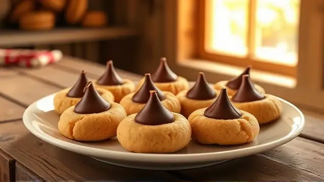 Remove from the oven and immediately press a chocolate kiss into the center of each cookie. Allow them to melt slightly and create a delicious topping.
