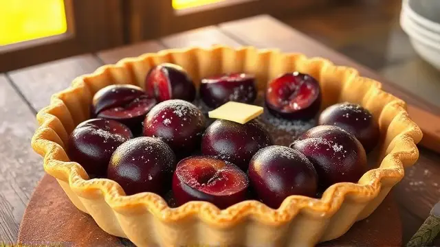 Bake to Perfection: Place the pie in a preheated oven at 425°F (220°C). After 15 minutes, reduce the heat to 400°F (200°C) and continue baking for another 25 minutes until the plums are bubbly and the crust is golden.